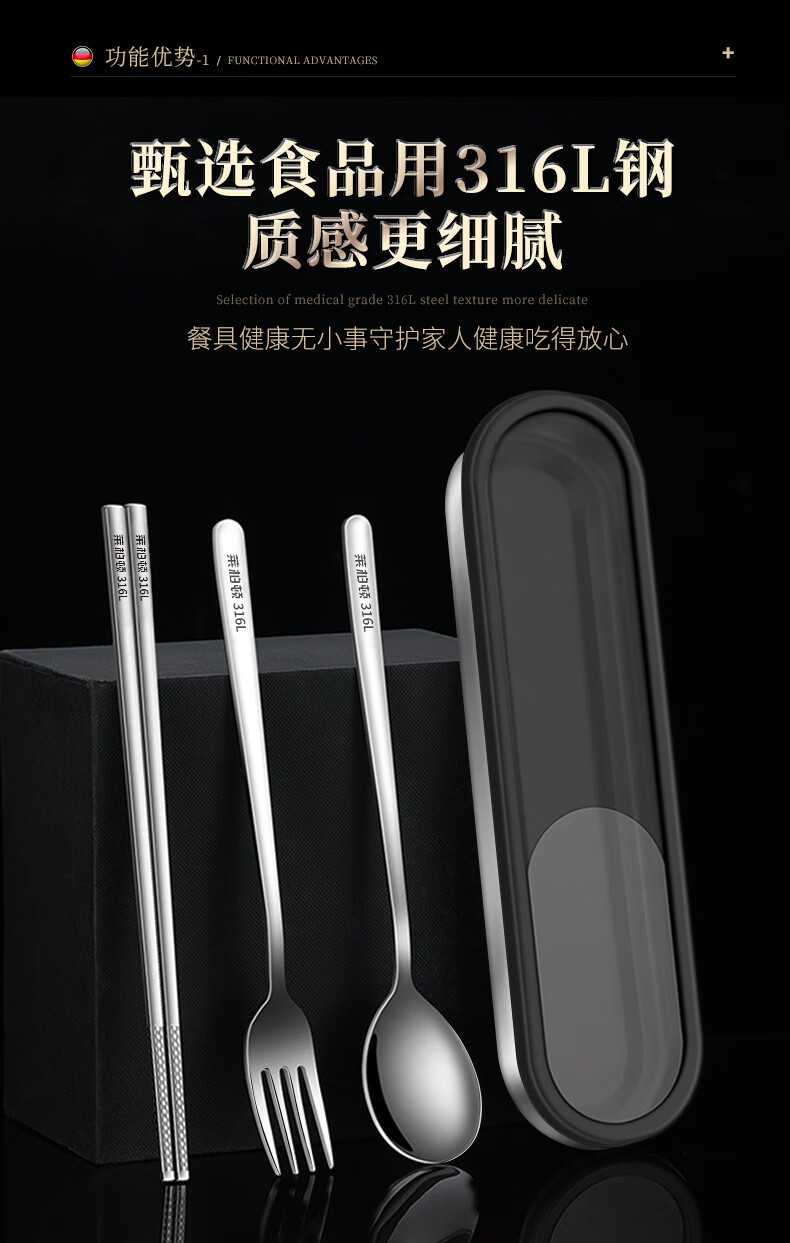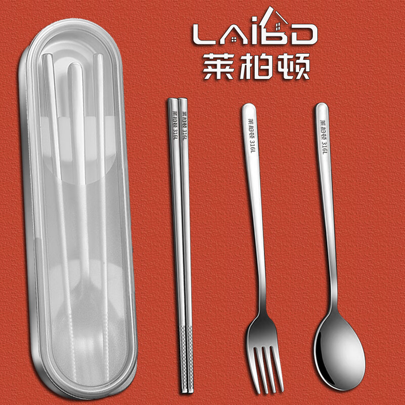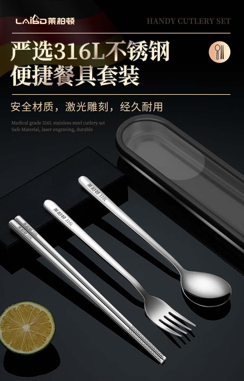 厨具  > 餐具  > 餐具套装  >  莱柏顿  >  莱柏顿316L不锈钢便携餐具套装筷子勺子叉子个人专用上班族小学生三件套 316L便携套装【勺筷叉】白盒/盒