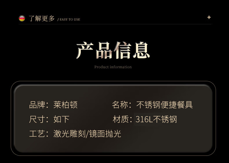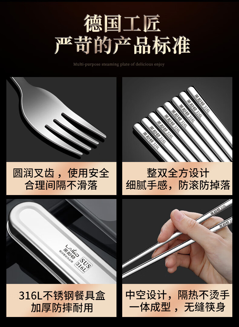 • 商品名称:莱柏顿316L不锈钢便携餐具套装筷子勺子叉子个人专用上班族小学生三件套 316L便携套装【勺筷叉】白盒/盒