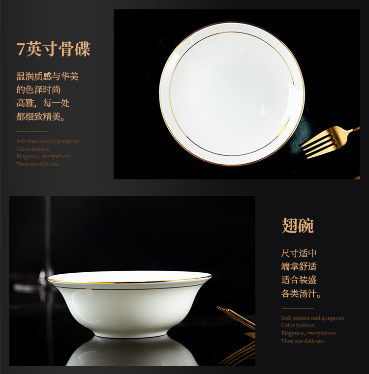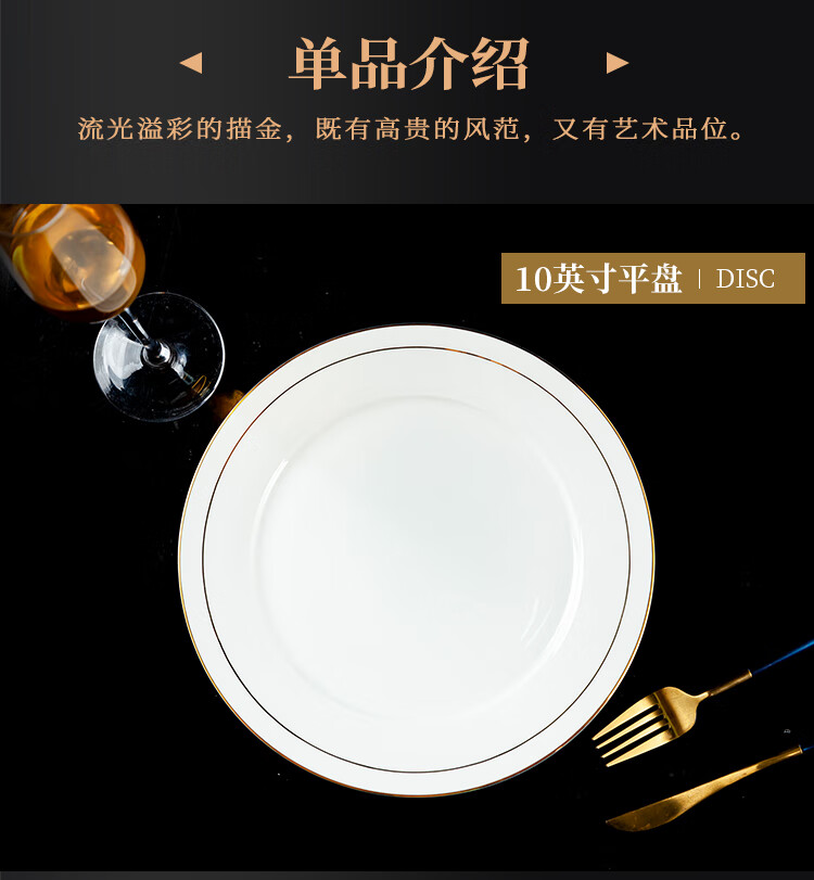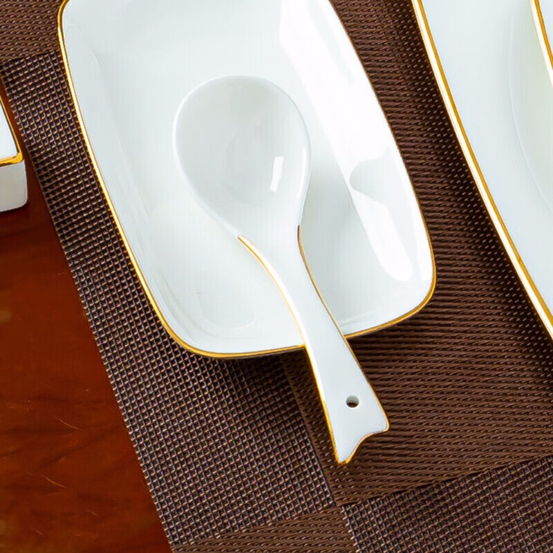• 商品名称:陶相惠中式陶瓷餐具摆台套装骨瓷碗碟盘勺餐厅会所四件套酒店碗盘定制 金边摆台-4件套/套