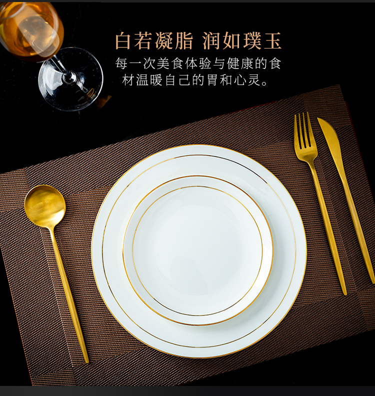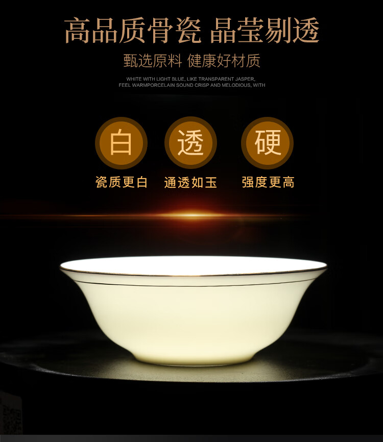 商品名称: 陶相惠中式陶瓷餐具摆台套装骨瓷碗碟盘勺餐厅会所四件套酒店碗盘定制 金边摆台-4件套/套