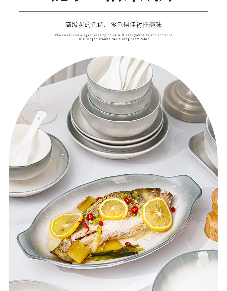 • 商品名称:佩尔森家用釉下彩简约陶瓷碗盘碟餐具套装整套乔迁礼物烟雨谣24件 餐具套装/套