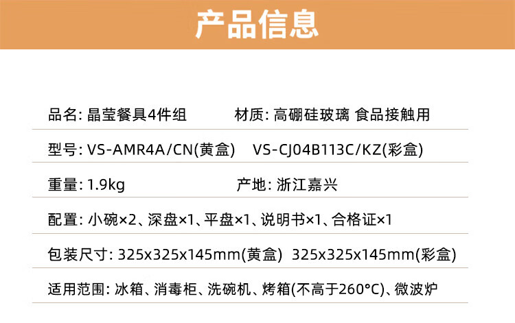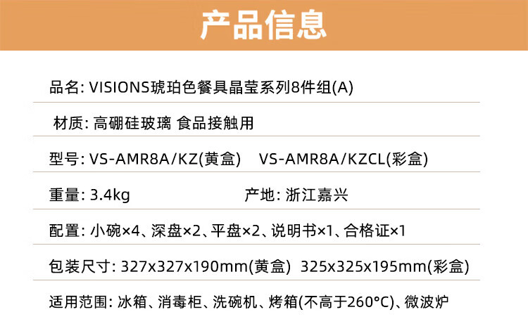 商品名称: CORELLE BRANDS康宁餐具 高硼硅玻璃 琥珀色餐具(晶莹系列)4件组 VISIONS琥珀色晶莹餐具4件组/个