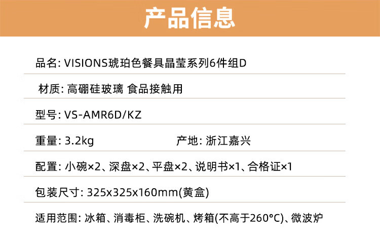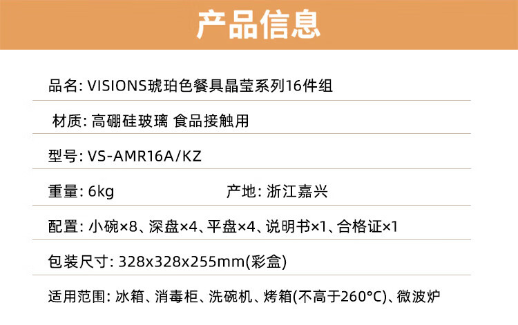 厨具  > 餐具  > 餐具套装  >  CORELLE  >  CORELLE BRANDS康宁餐具 高硼硅玻璃 琥珀色餐具(晶莹系列)4件组 VISIONS琥珀色晶莹餐具4件组/个