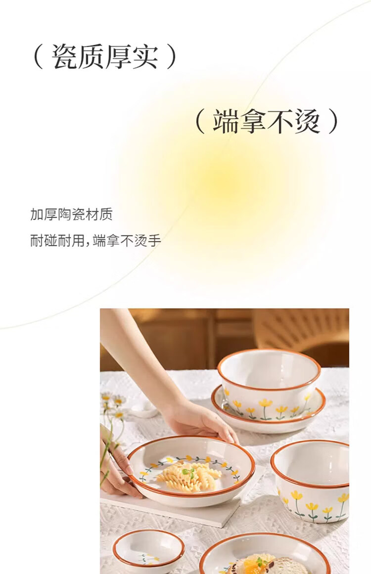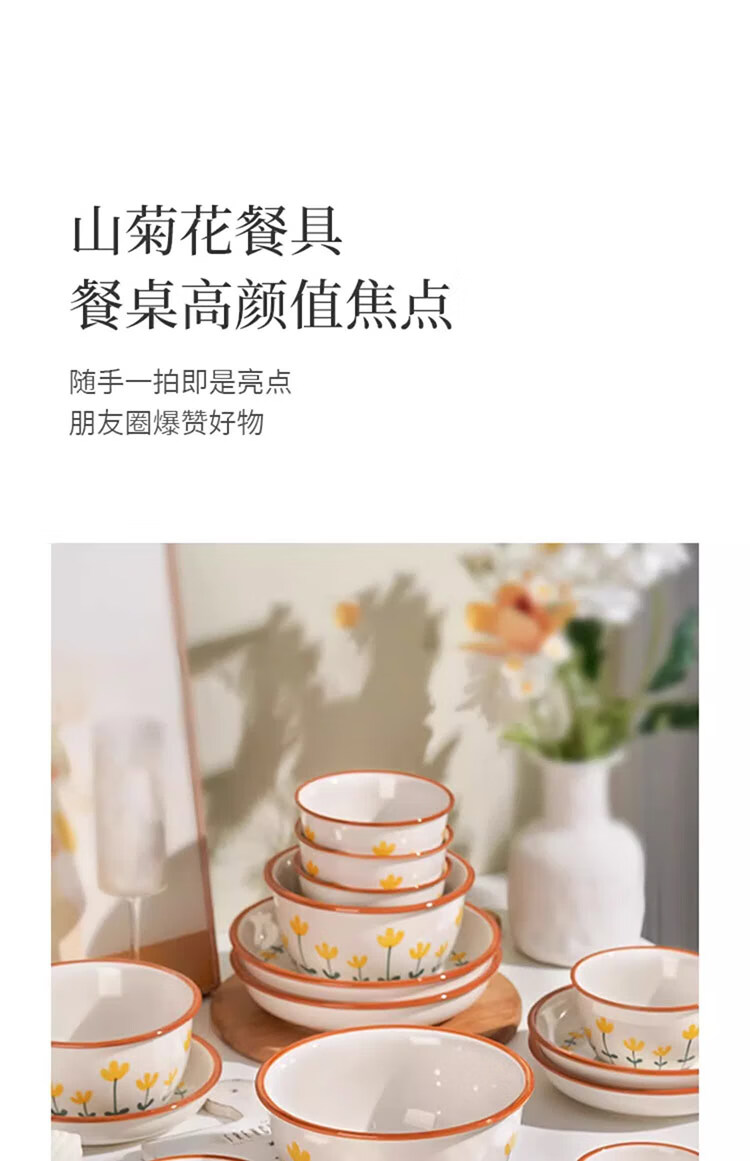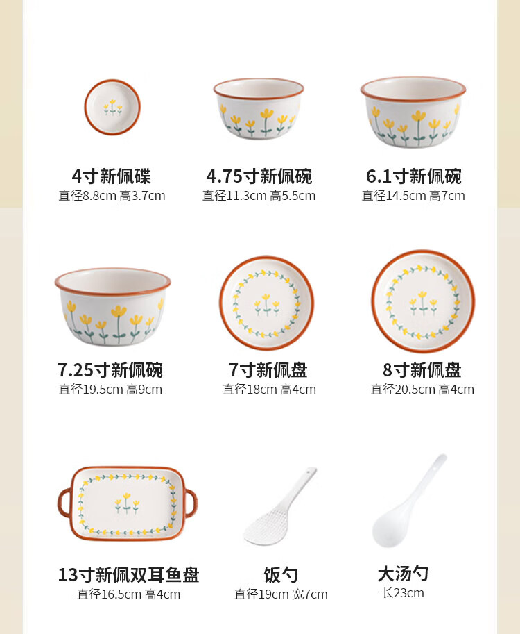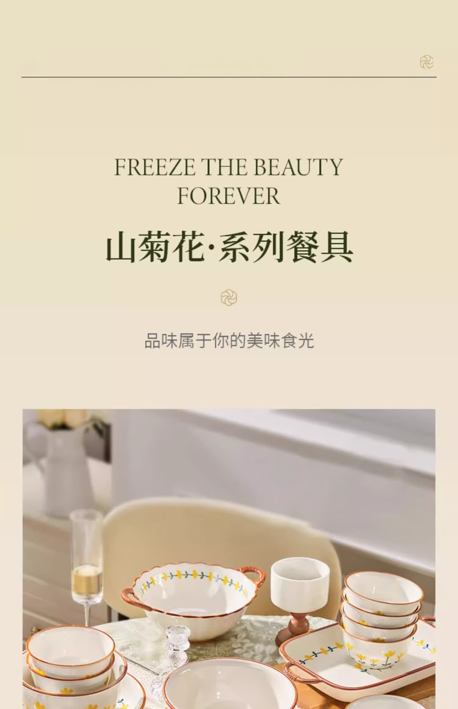 • 商品名称:佩尔森陶瓷碗盘套装家用釉下彩碗盘筷餐具整套山菊花72头礼盒装 餐具套装/套