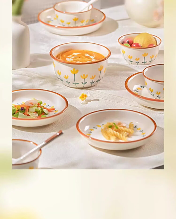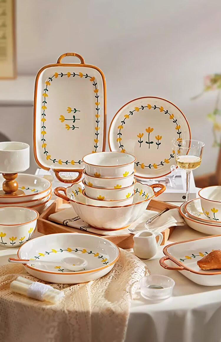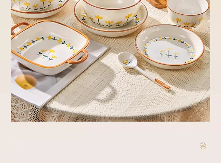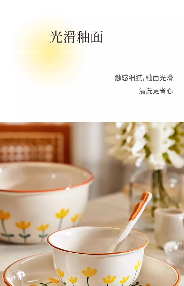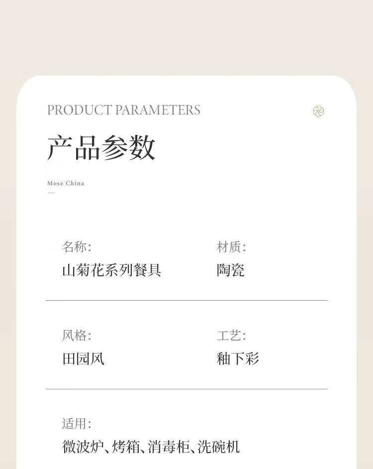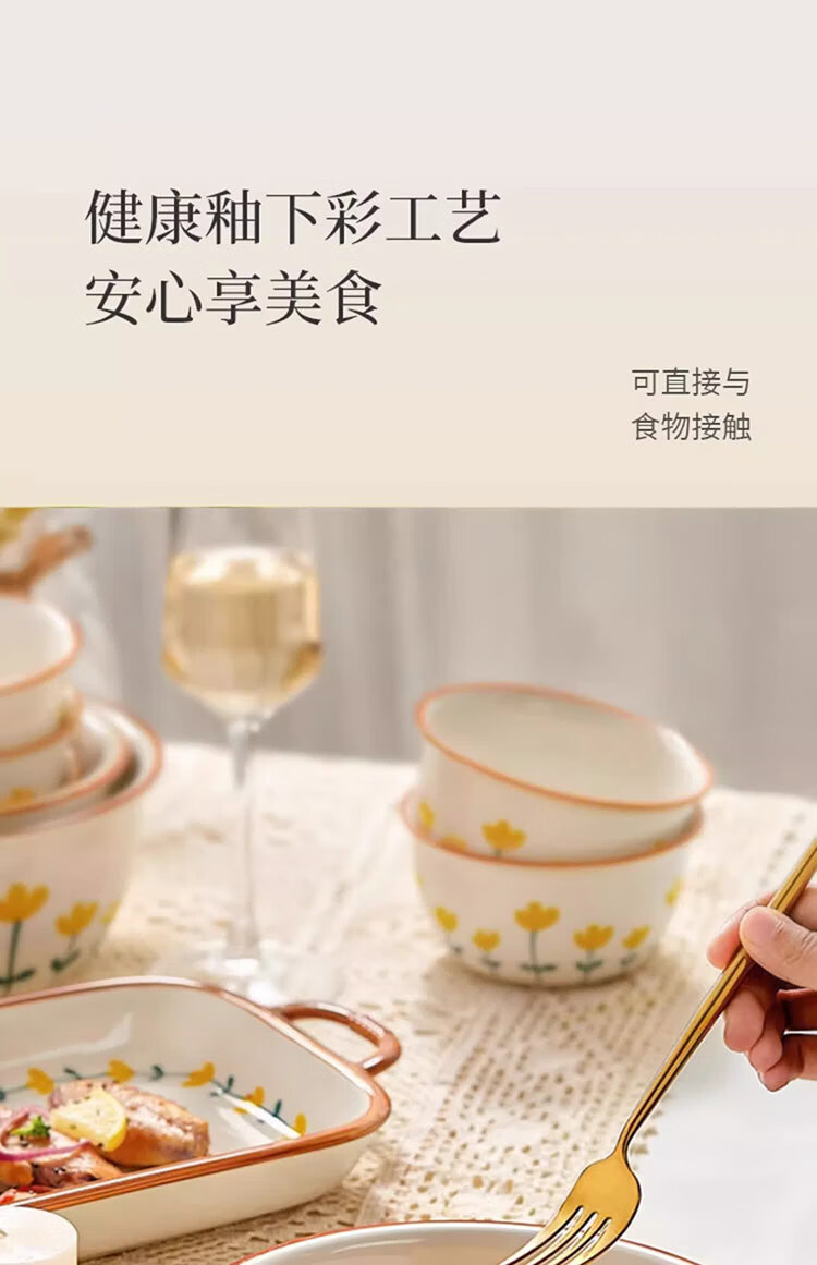 • 商品名称:佩尔森陶瓷碗盘套装家用釉下彩碗盘筷餐具整套山菊花72头礼盒装 餐具套装/套