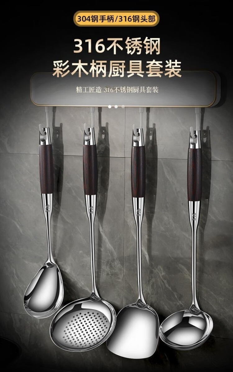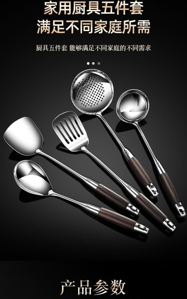 • 商品名称:HUIHUADU316不锈钢锅铲套装黑檀木【锅铲+汤勺+漏勺】 锅铲套装/套