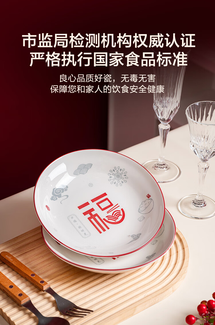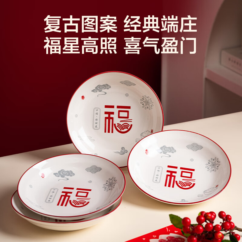 厨具  > 餐具  > 餐具套装  >  惠寻  >  惠寻京东自有品牌 釉下彩中式福字祥云家用碗碟套装7英寸盘子4只装 福字祥云/套
