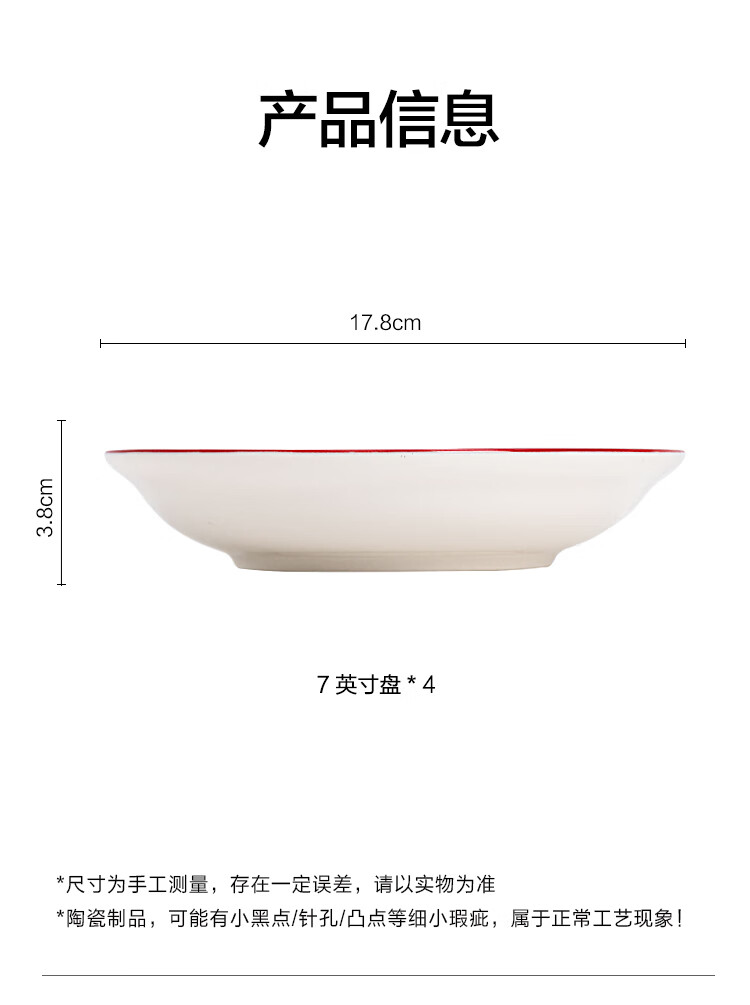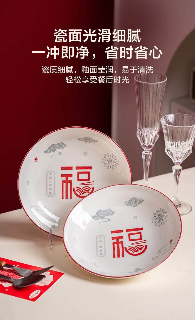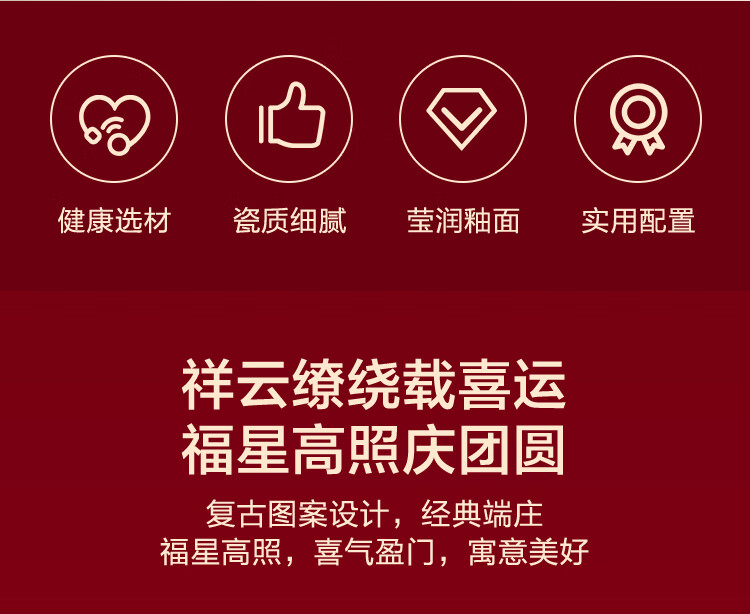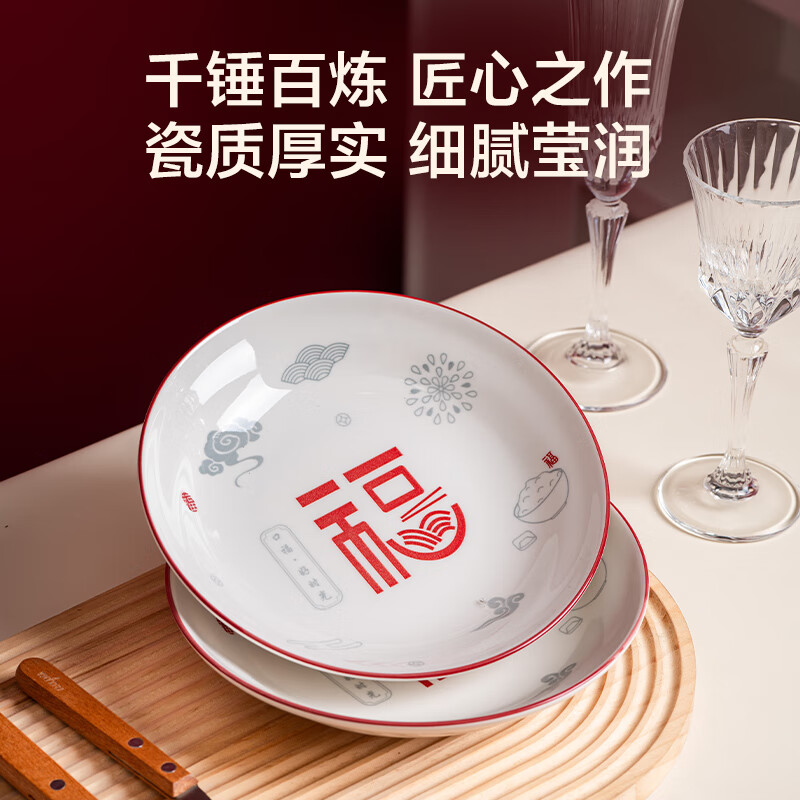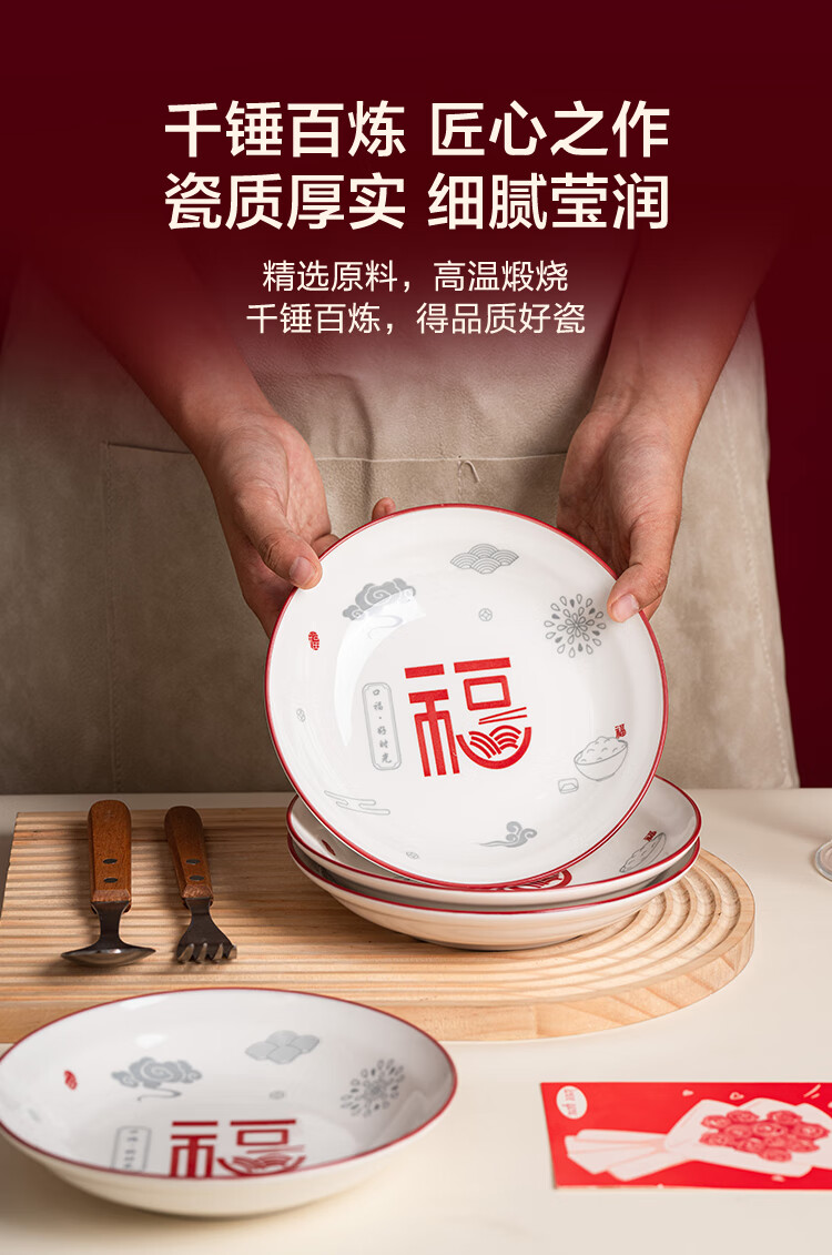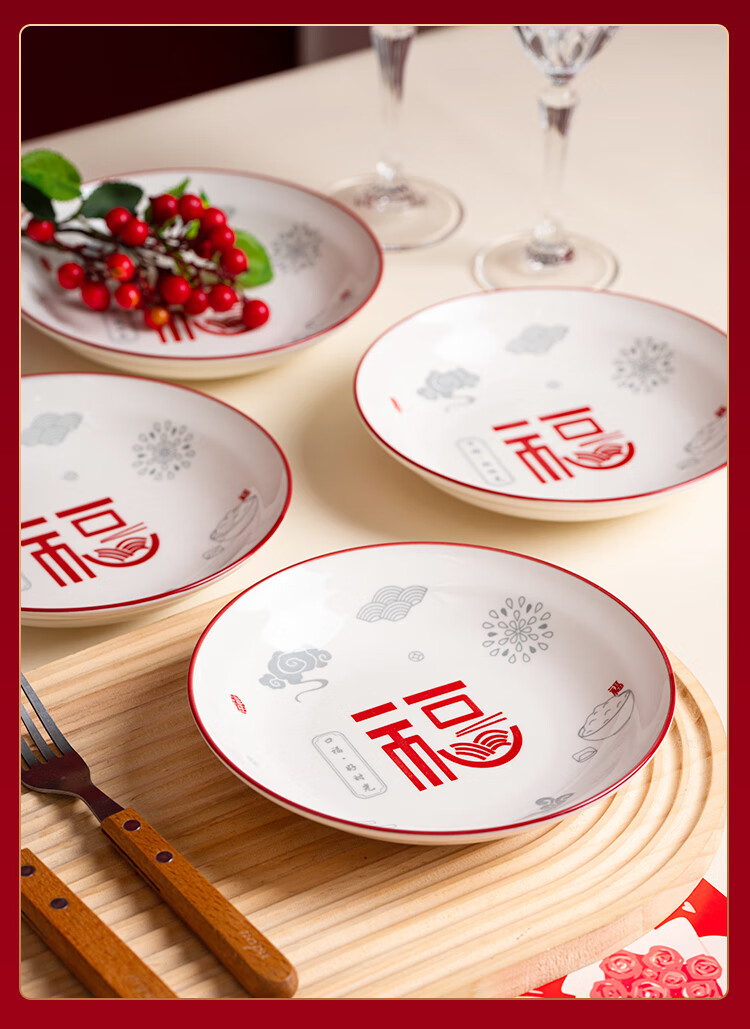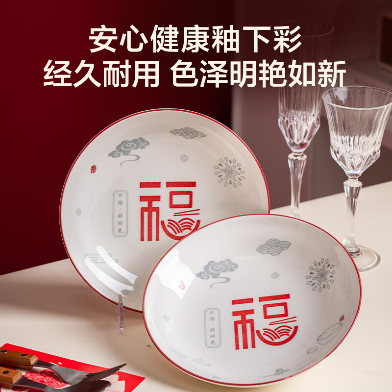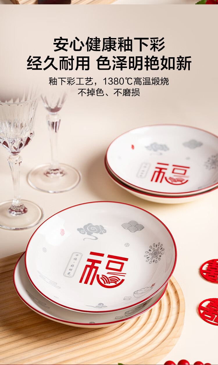 • 商品名称:惠寻京东自有品牌 釉下彩中式福字祥云家用碗碟套装7英寸盘子4只装 福字祥云/套