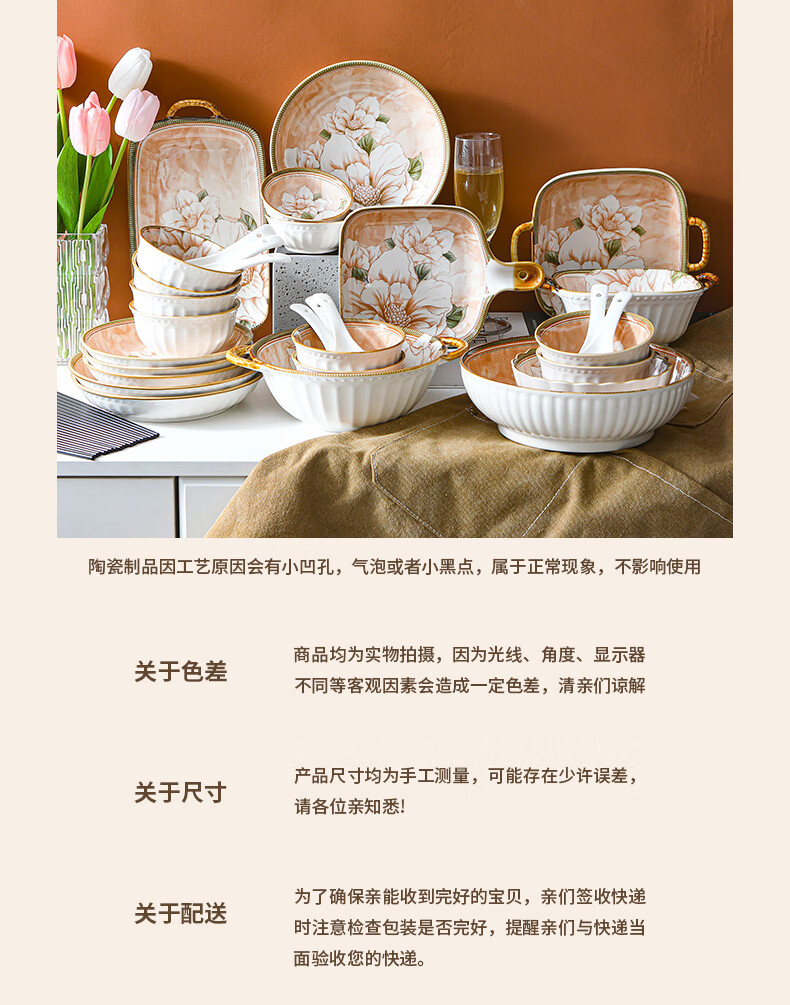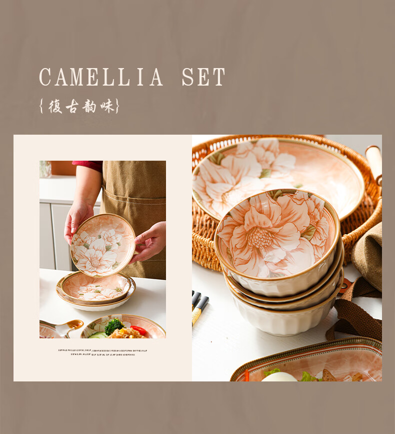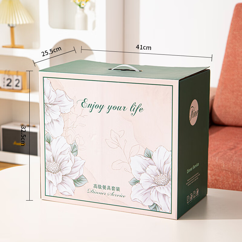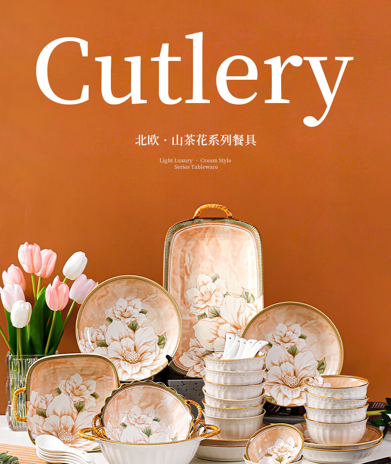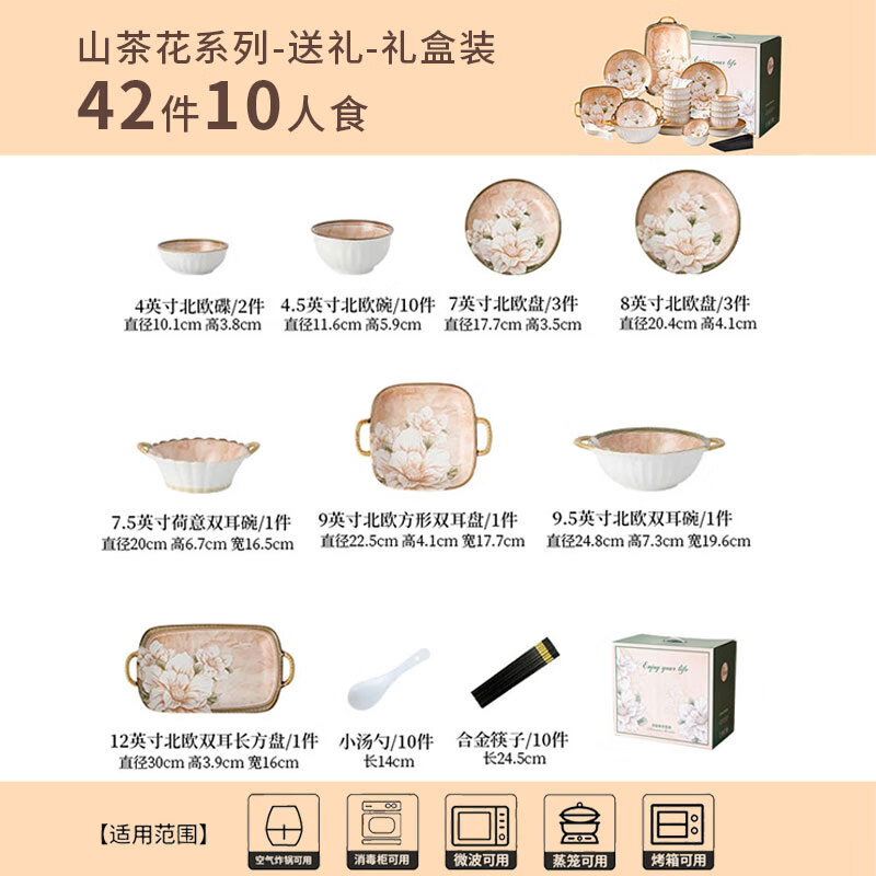 • 商品名称:佩尔森碗筷套装家用日式釉下彩陶瓷餐具乔迁送礼山茶花42头礼盒装 餐具套装/套