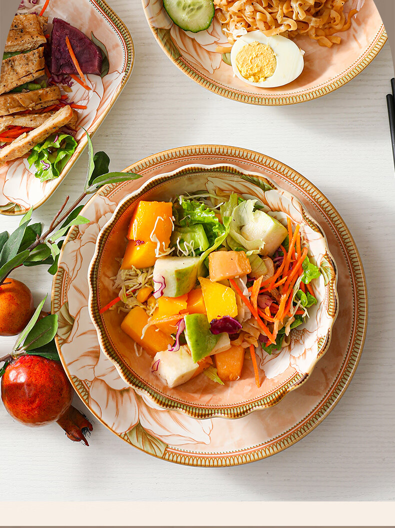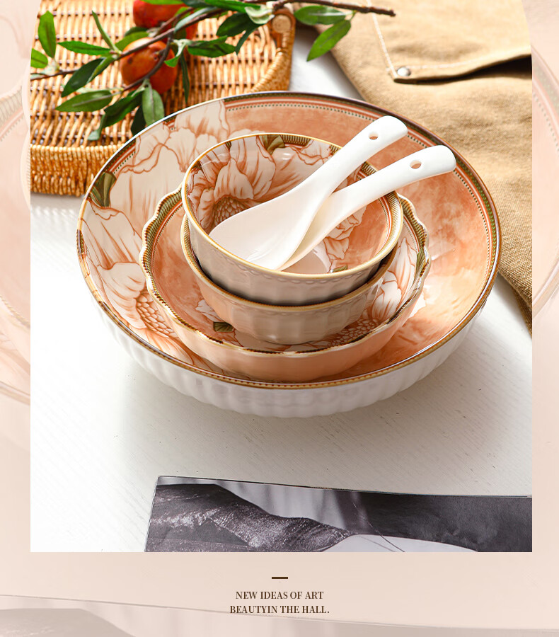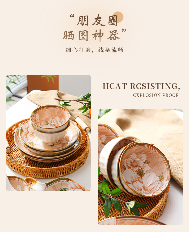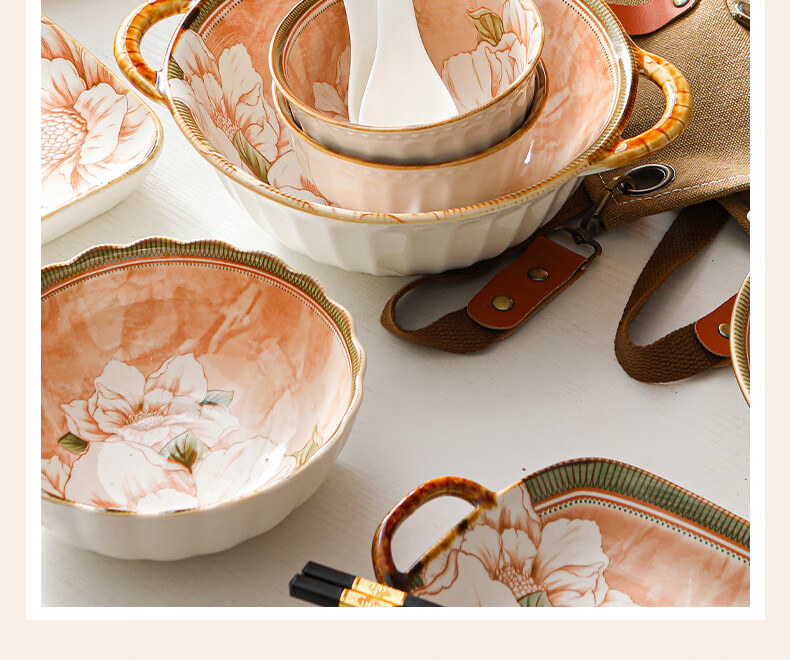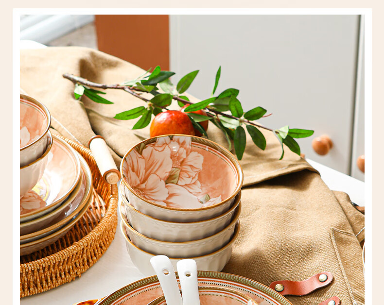 • 商品名称:佩尔森碗筷套装家用日式釉下彩陶瓷餐具乔迁送礼山茶花42头礼盒装 餐具套装/套