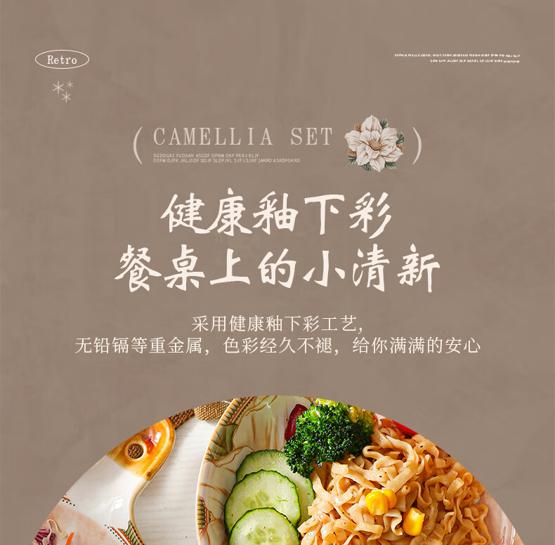 商品名称: 佩尔森碗筷套装家用日式釉下彩陶瓷餐具乔迁送礼山茶花42头礼盒装 餐具套装/套