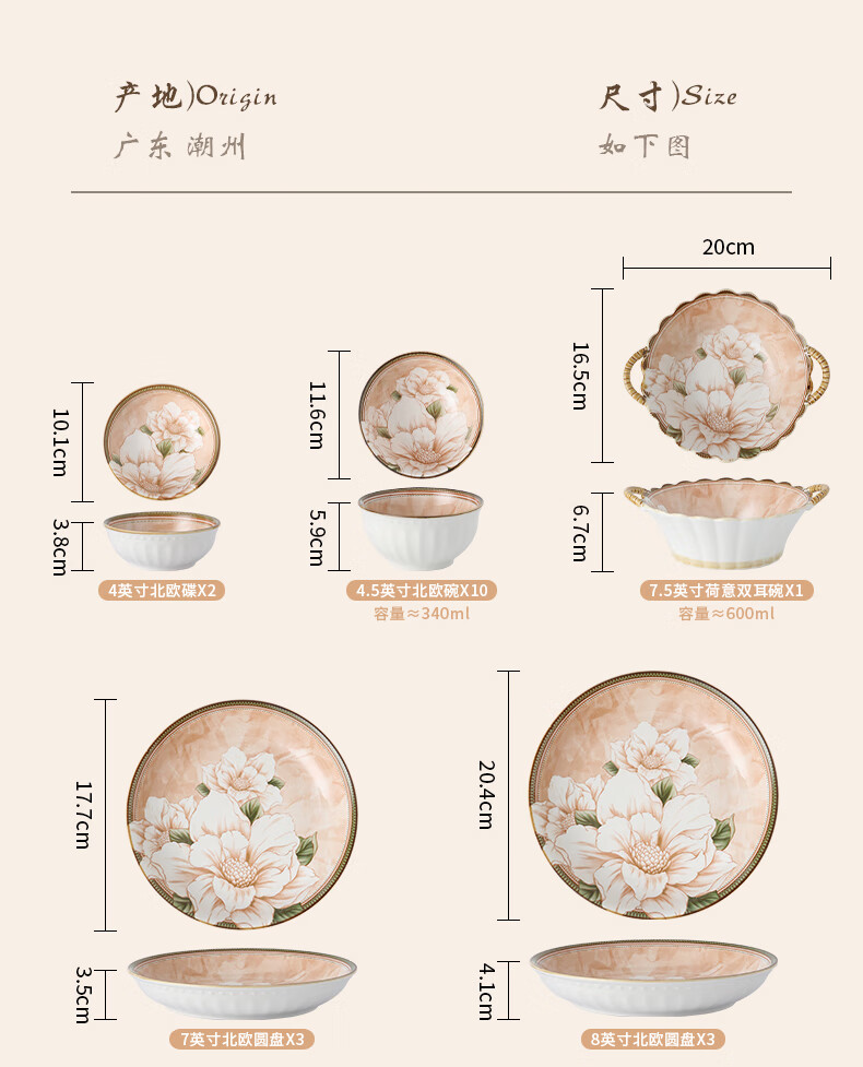 包装清单: 山茶花42件套礼盒装