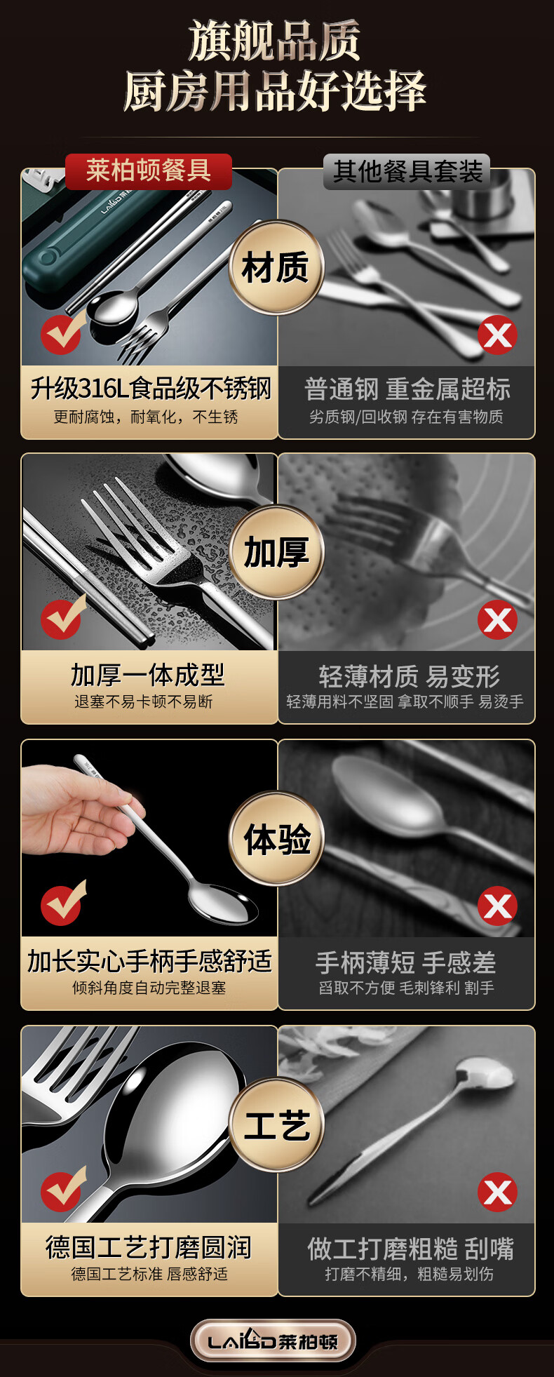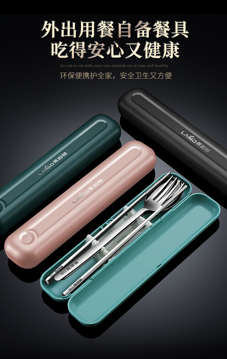 • 商品名称:莱柏顿316L不锈钢便携餐具筷勺叉套装筷子勺子学生成人旅行餐具盒三件套 316L不锈钢【筷勺叉+酷黑便携盒】 3件套/套