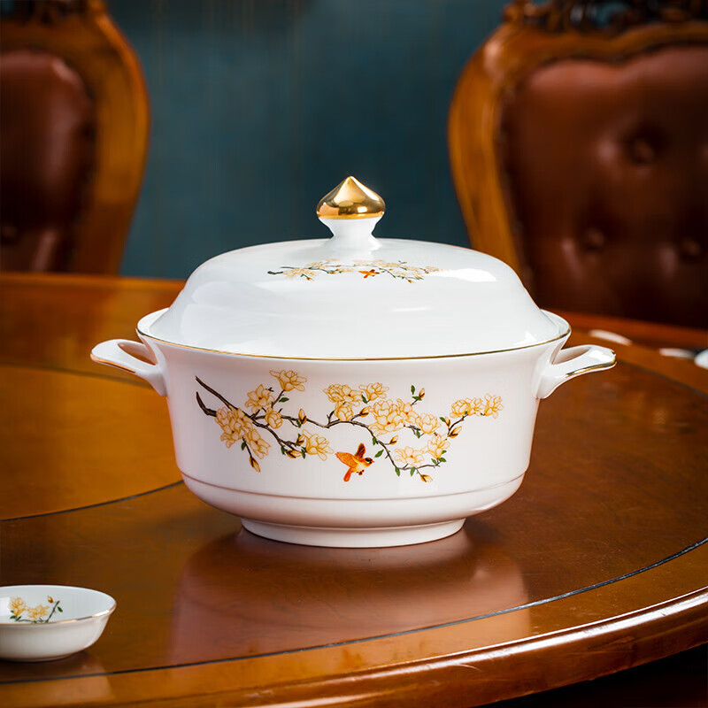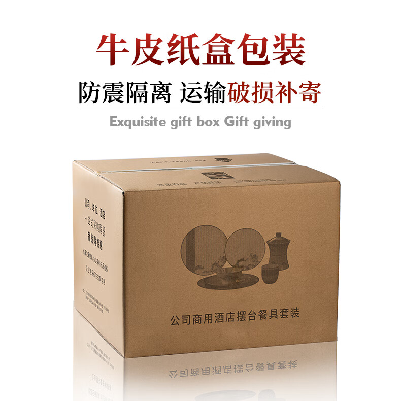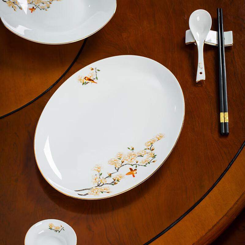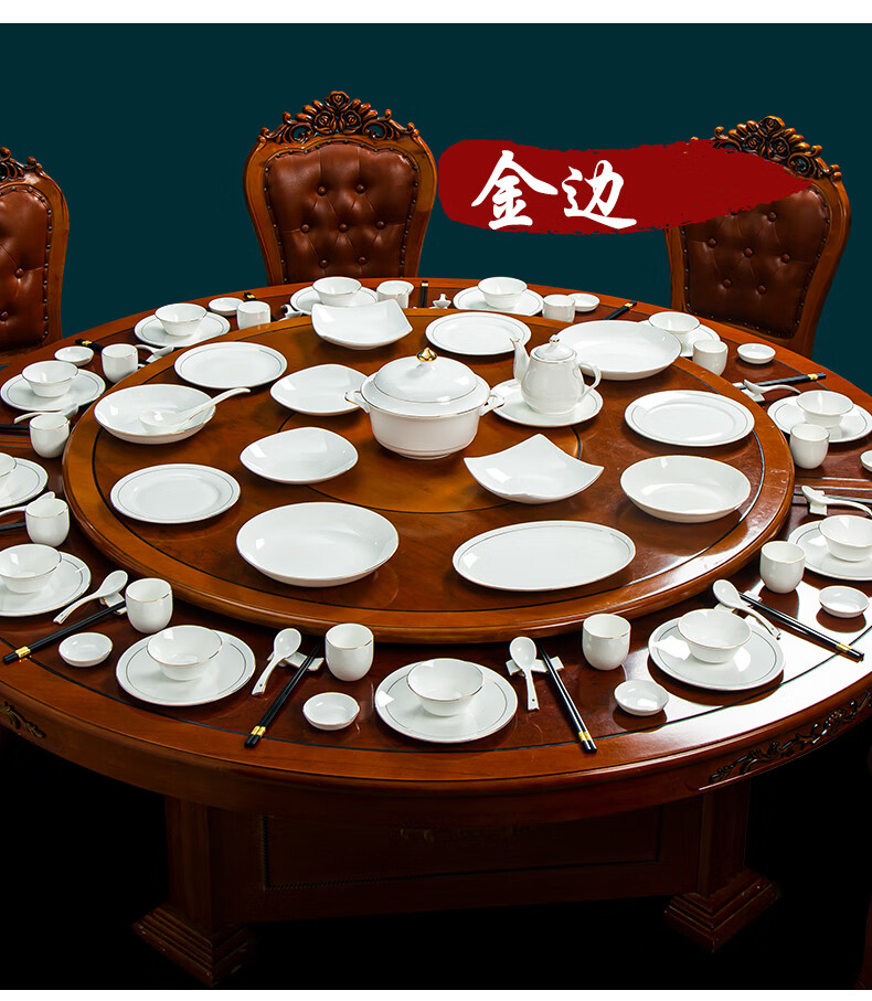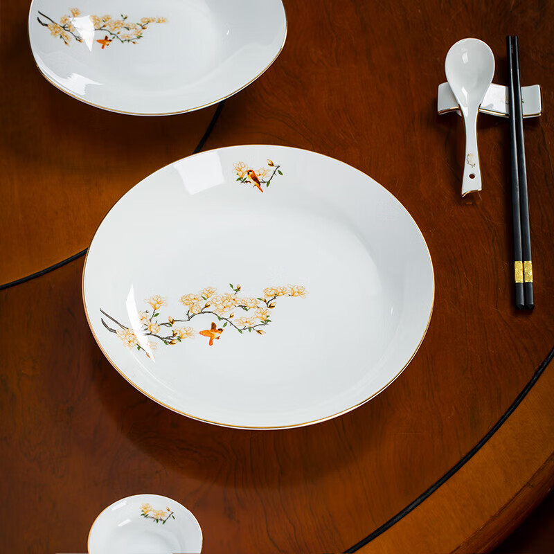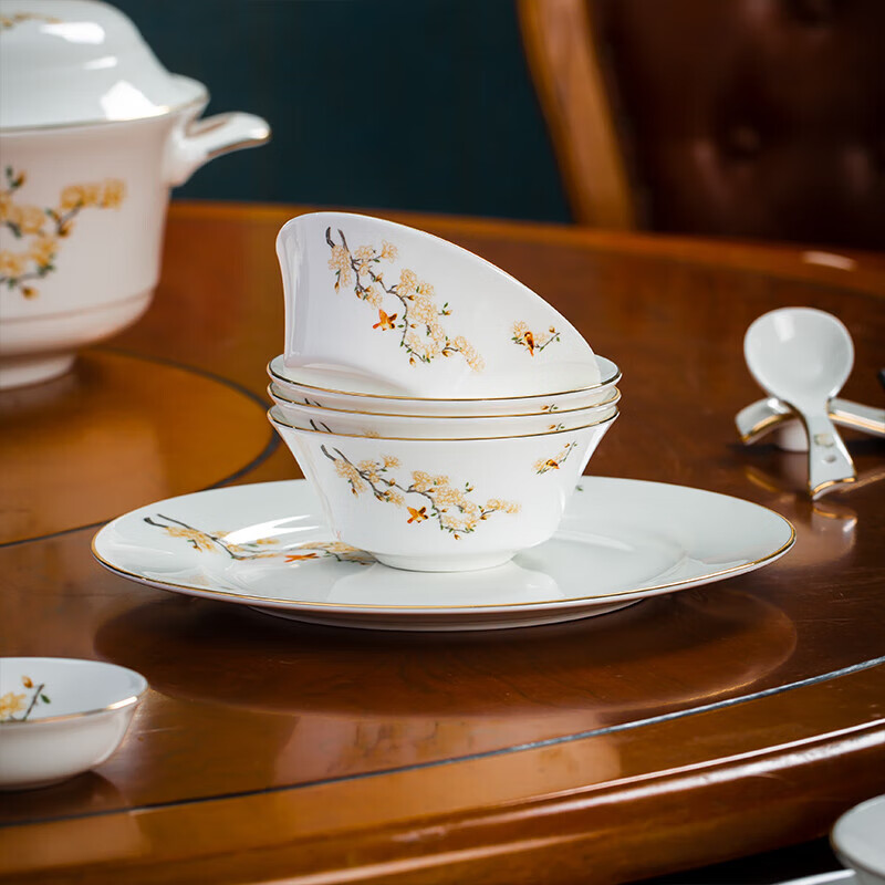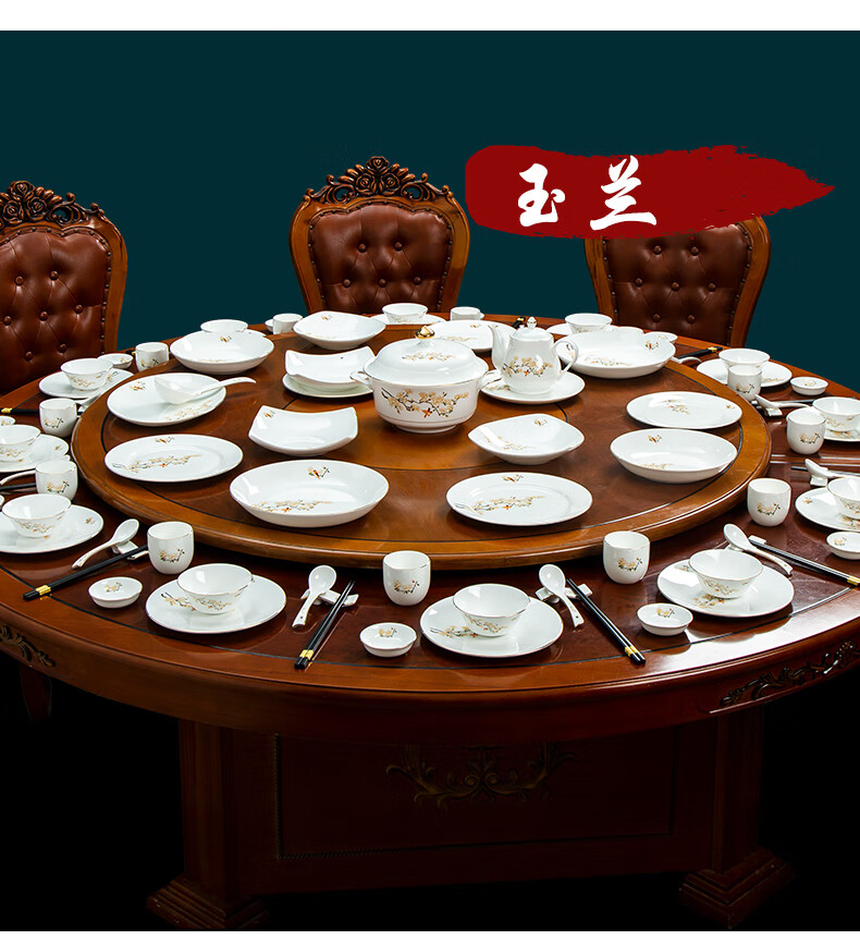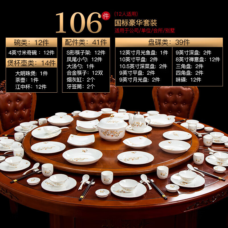 商品名称: 陶相惠餐具套装商用圆桌餐具12人位骨瓷中国风碗碟套装酒店摆台餐具套装 金边玉兰12人位国标豪华套装/套