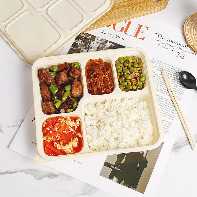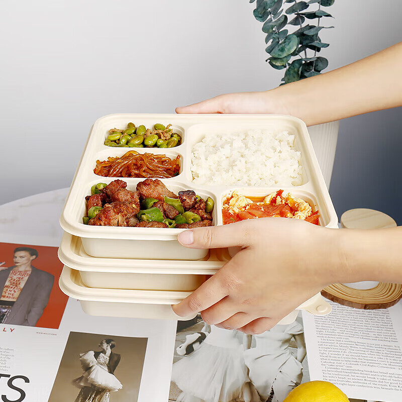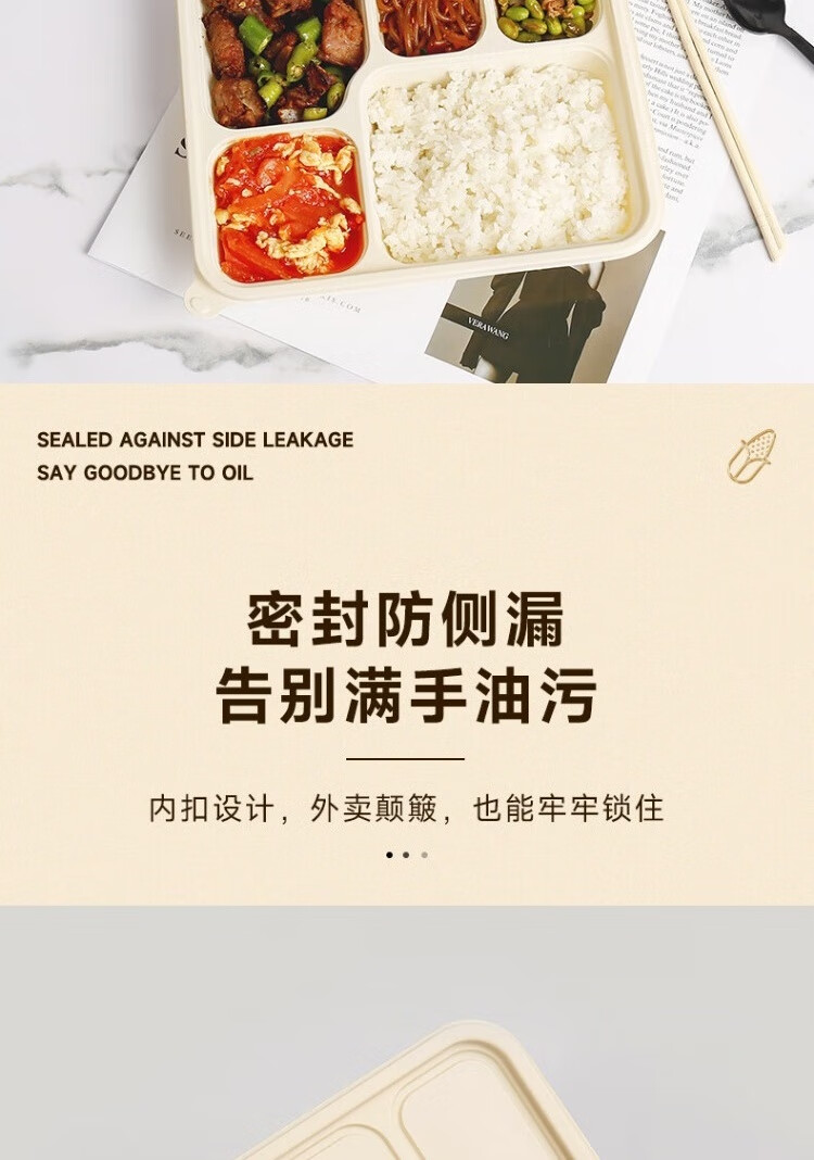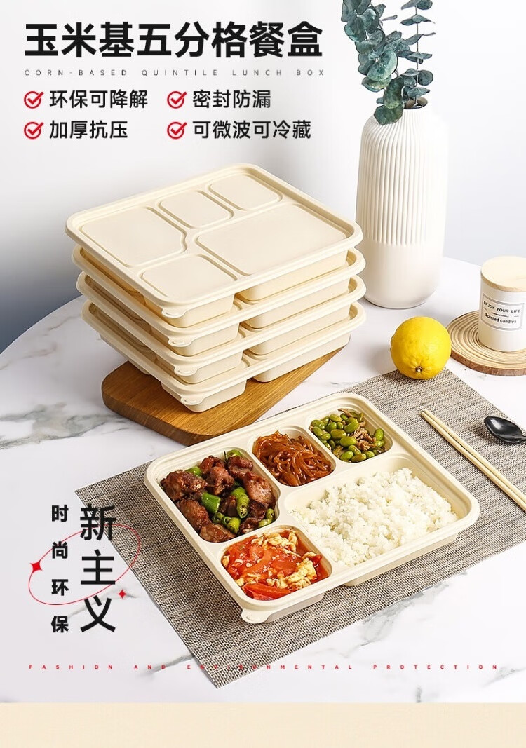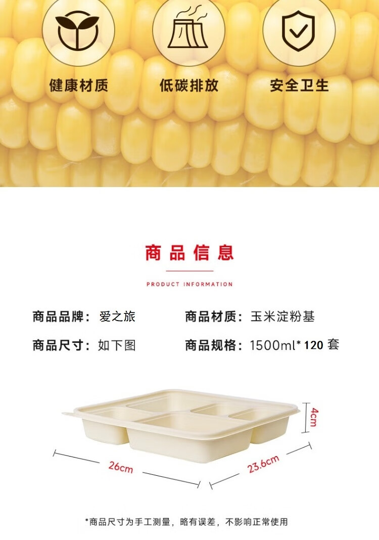 • 商品名称:爱之旅 可降解五格餐盒玉米淀粉带盖饭盒 打包保鲜盒1500ml*120套/件 带盖饭盒/件