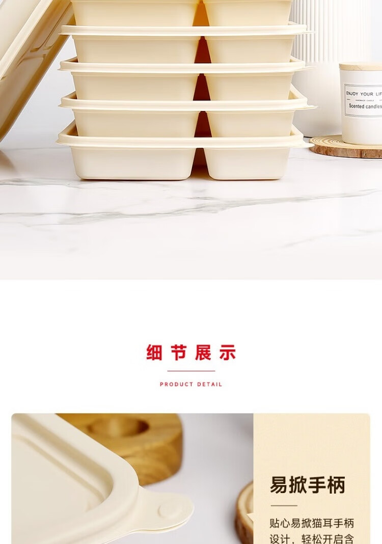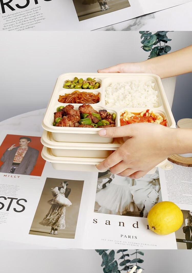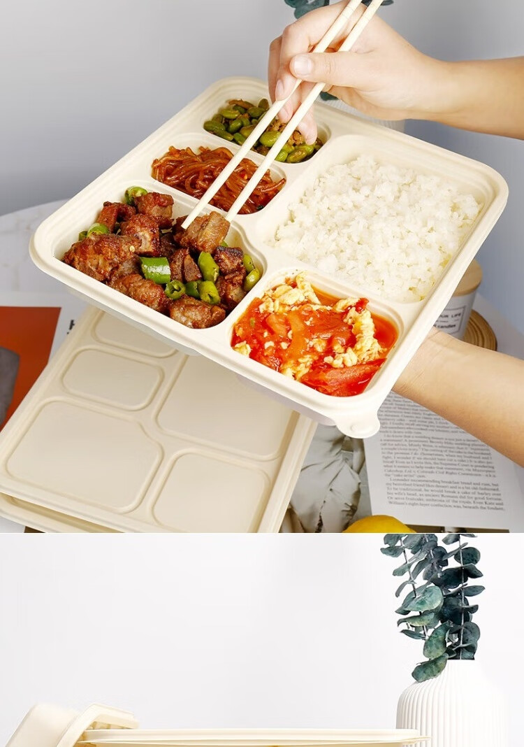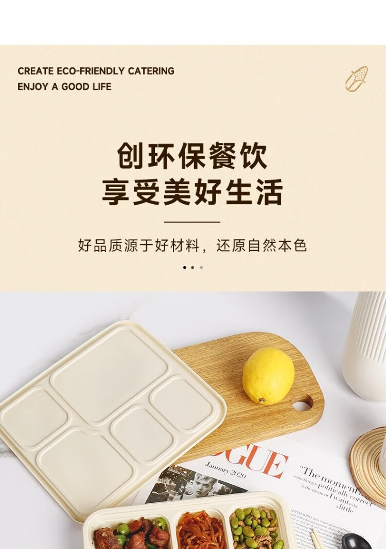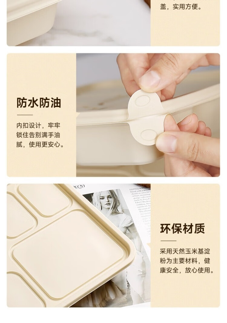 • 商品名称:爱之旅 可降解五格餐盒玉米淀粉带盖饭盒 打包保鲜盒1500ml*120套/件 带盖饭盒/件