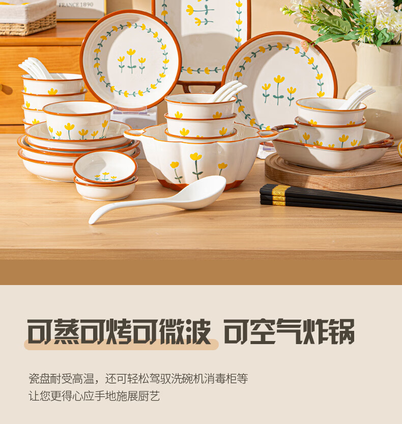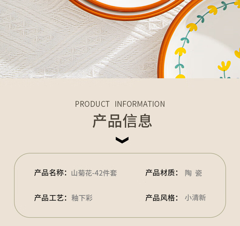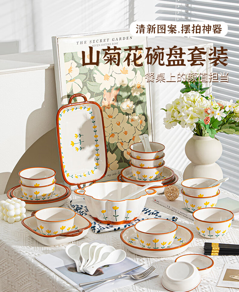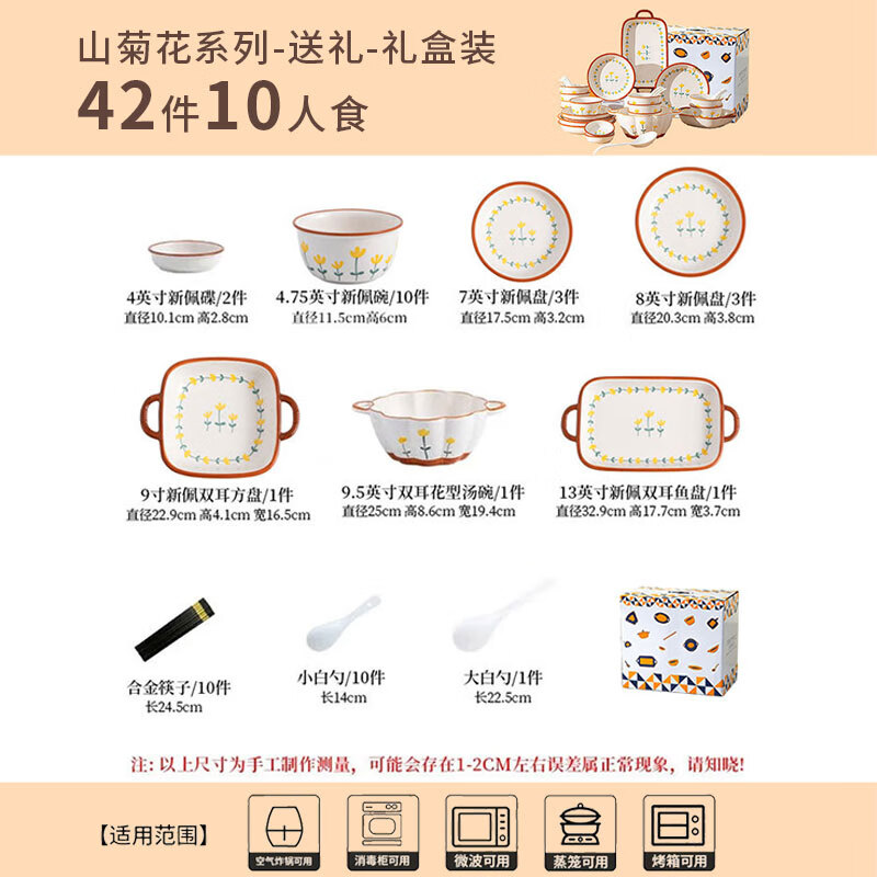 • 商品名称:佩尔森陶瓷餐具整套家用简约釉下彩碗筷套装乔迁送礼 42头山菊花礼盒装 餐具套装/套