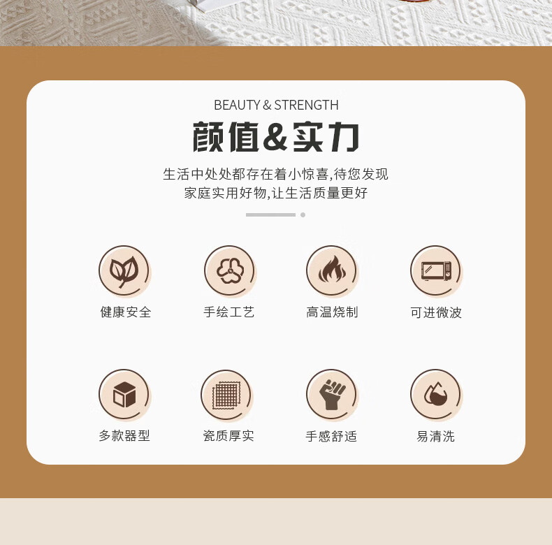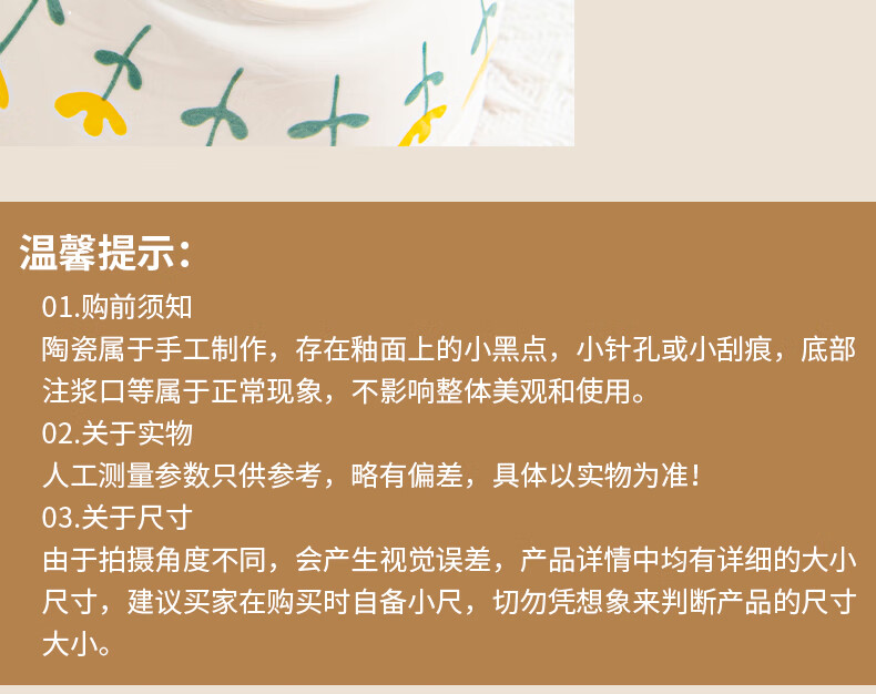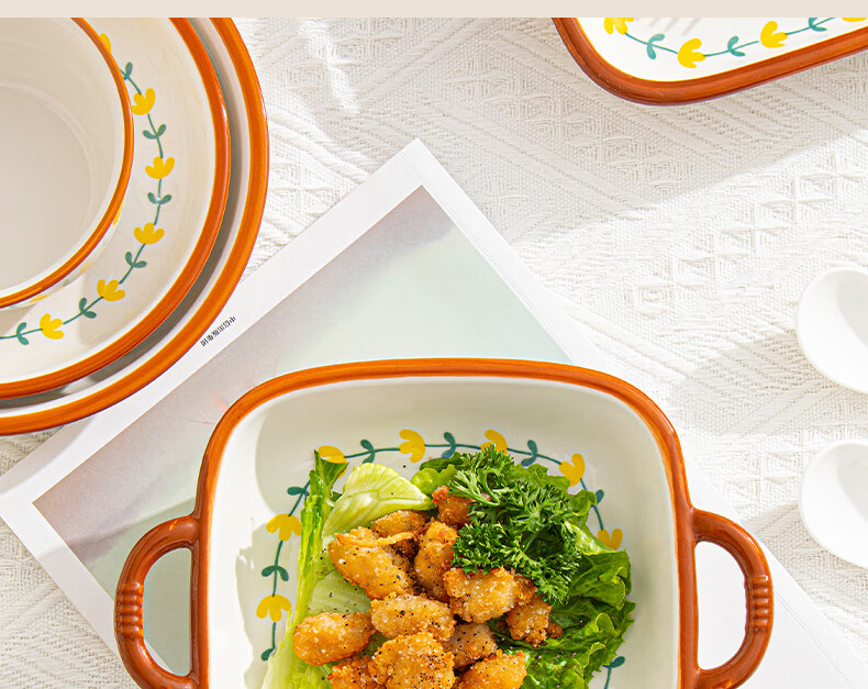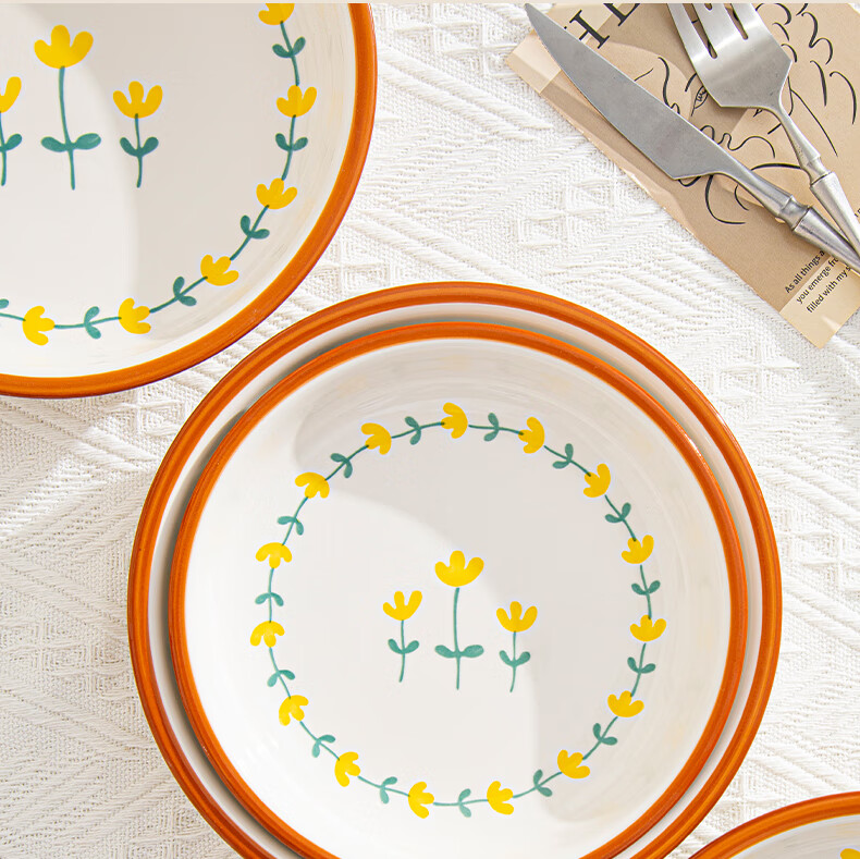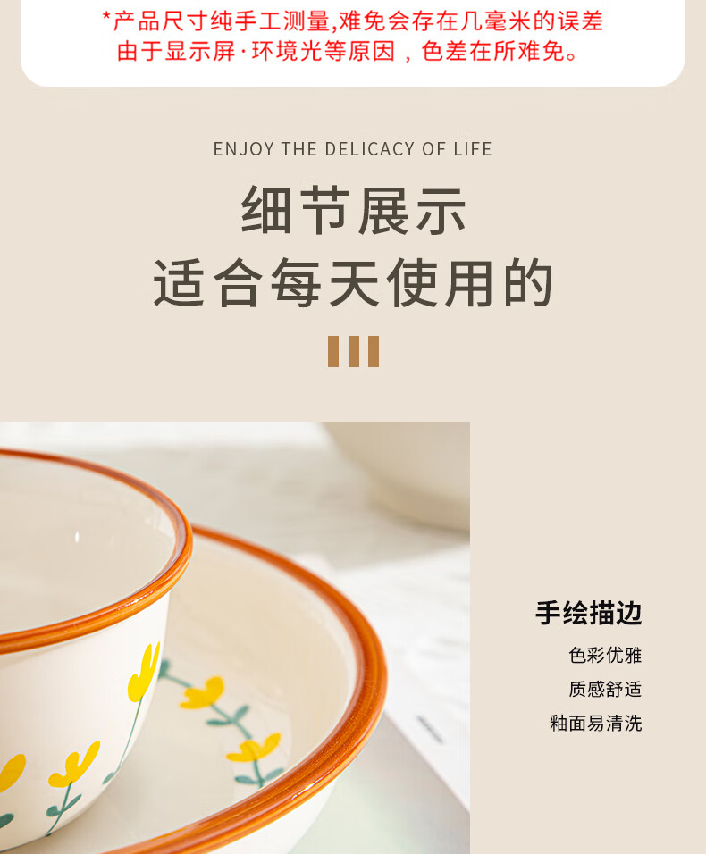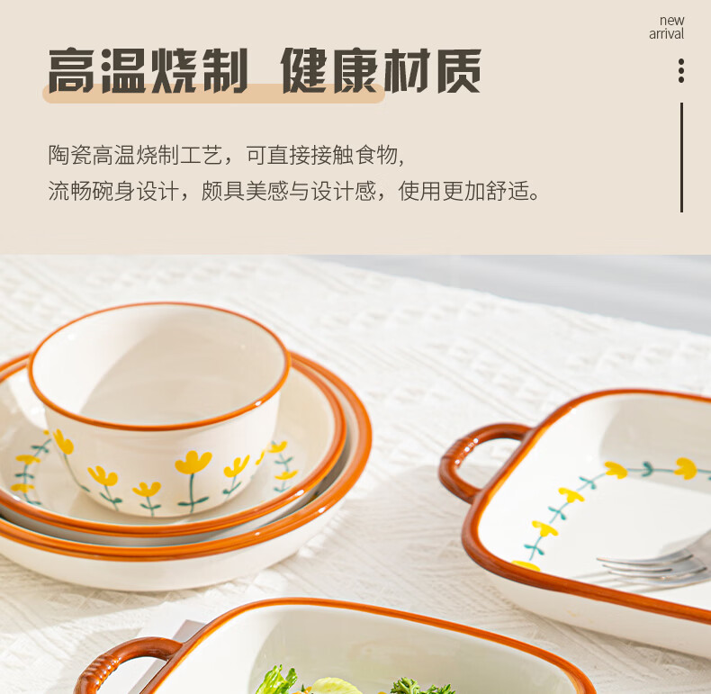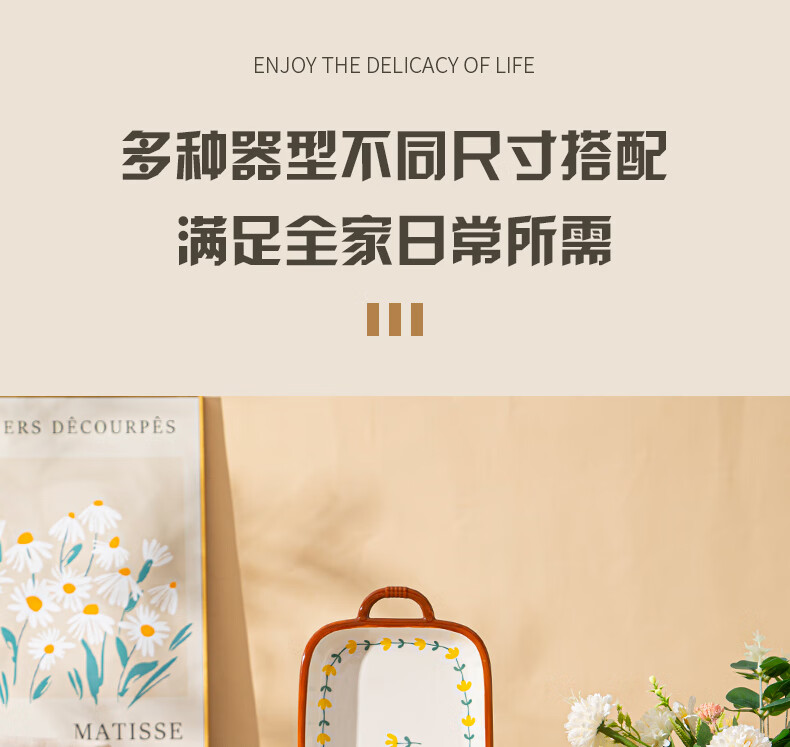 包装清单: 9.5英寸双耳花型汤碗1 合金筷子10 大白勺1 小白勺10 4.75英寸新佩碗/山菊花10 4英寸新佩碟/山菊花2 7英寸新佩盘/山菊花3 8英寸新佩盘/山菊花3 9寸新佩双耳方盘/山菊花1 13英寸新佩双耳鱼盘/山菊花1