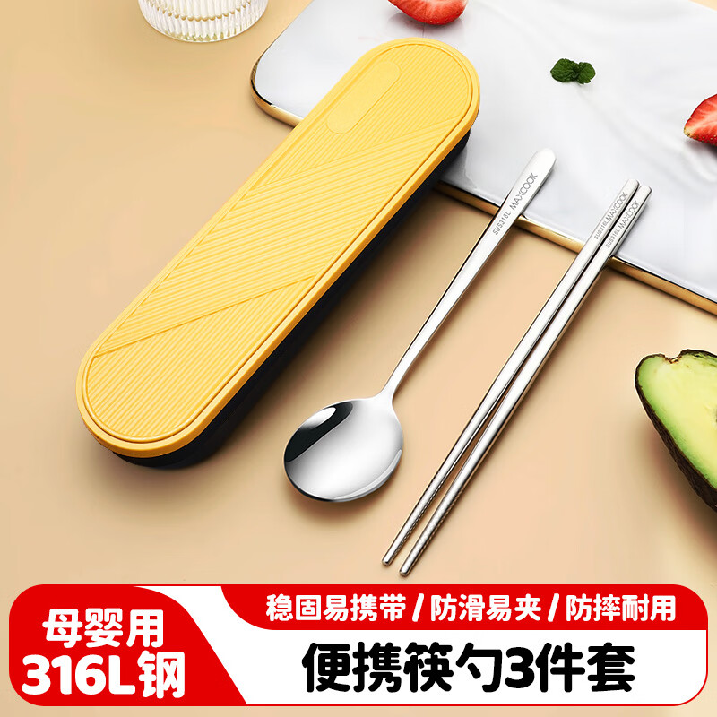 厨具  > 餐具  > 餐具套装  >  美厨/maxcook  >  美厨(maxcook)316L不锈钢筷子勺子餐具套装 便携式筷勺三件套 北欧蓝 MCK5121 316L不锈钢筷勺/个