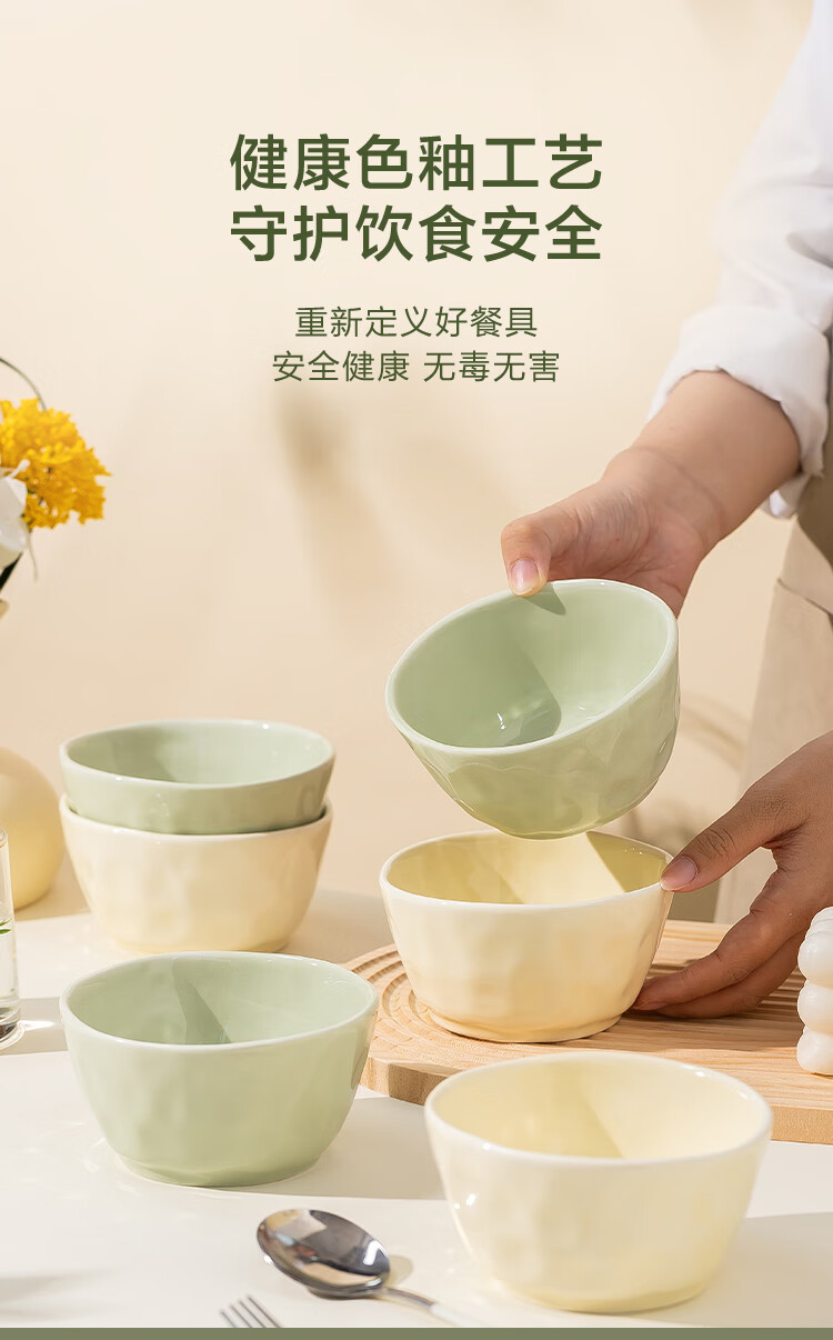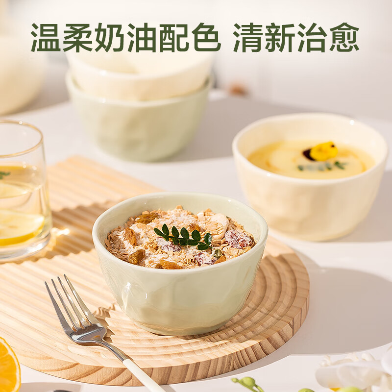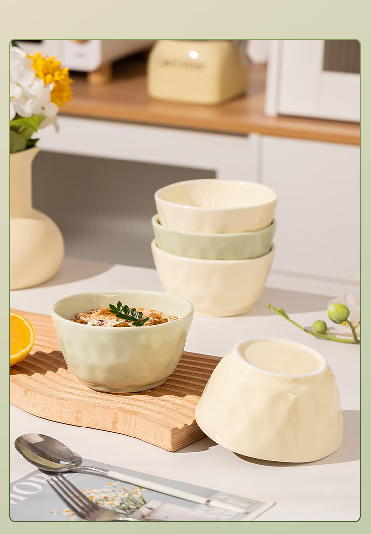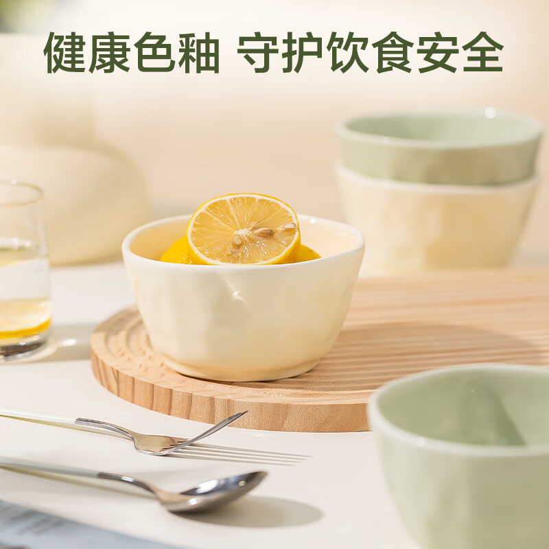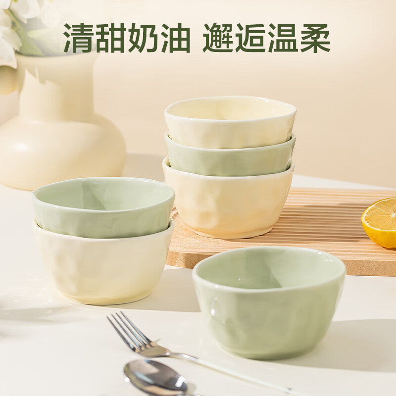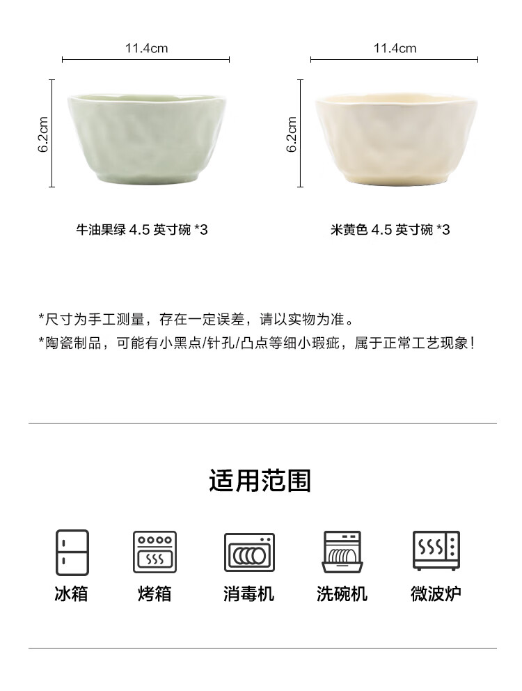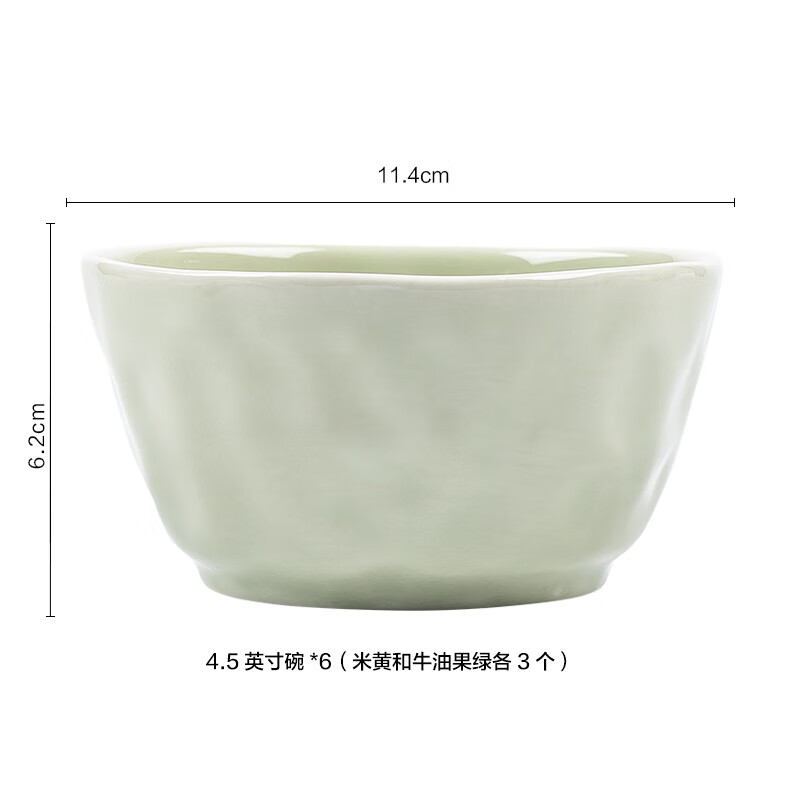 包装清单: 4.5英寸碗*6(米黄和牛油果绿各3个)