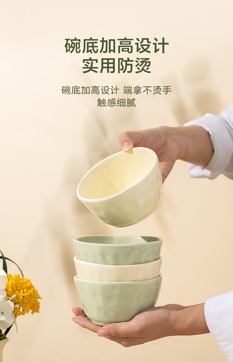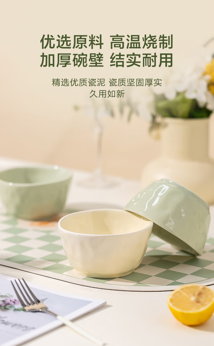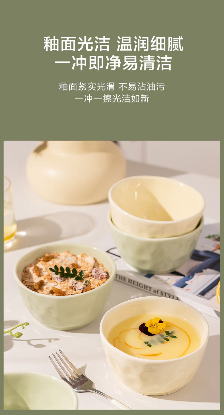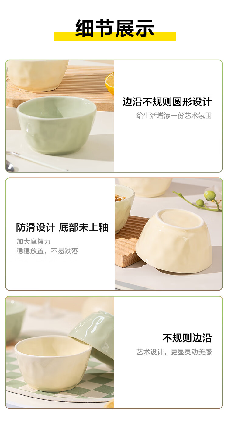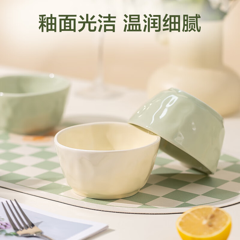 包装清单: 4.5英寸碗*6(米黄和牛油果绿各3个)