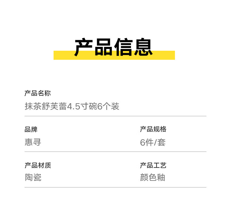 商品名称: 惠寻 碗 家用陶瓷碗碟套装抹茶舒芙蕾双色米饭碗 4.5英寸6只装 抹茶舒芙蕾/套