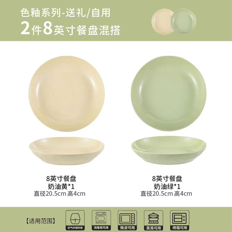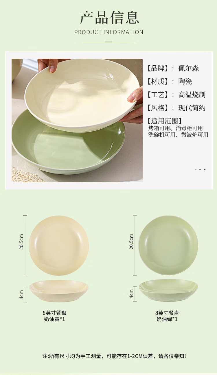厨具  > 餐具  > 餐具套装  >  佩尔森/CERAMICS  >  佩尔森奶油风陶瓷盘子菜盘家用碗盘餐具釉下彩高级感餐盘奶油8盘2只装 餐具套装/只