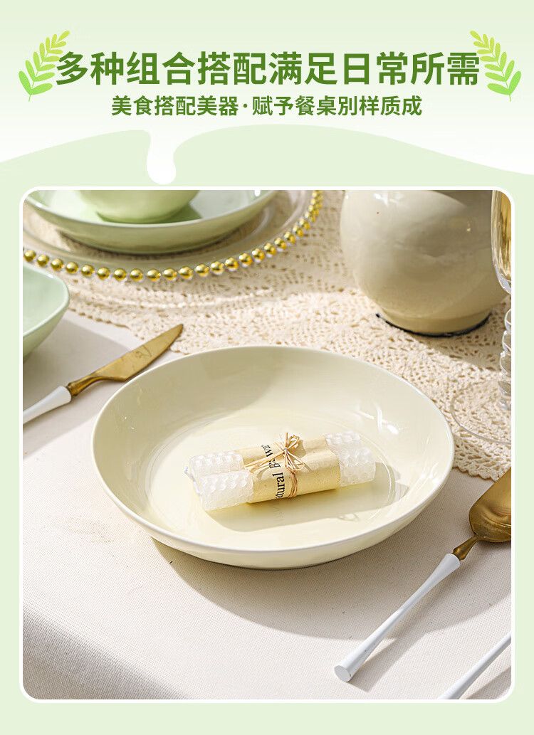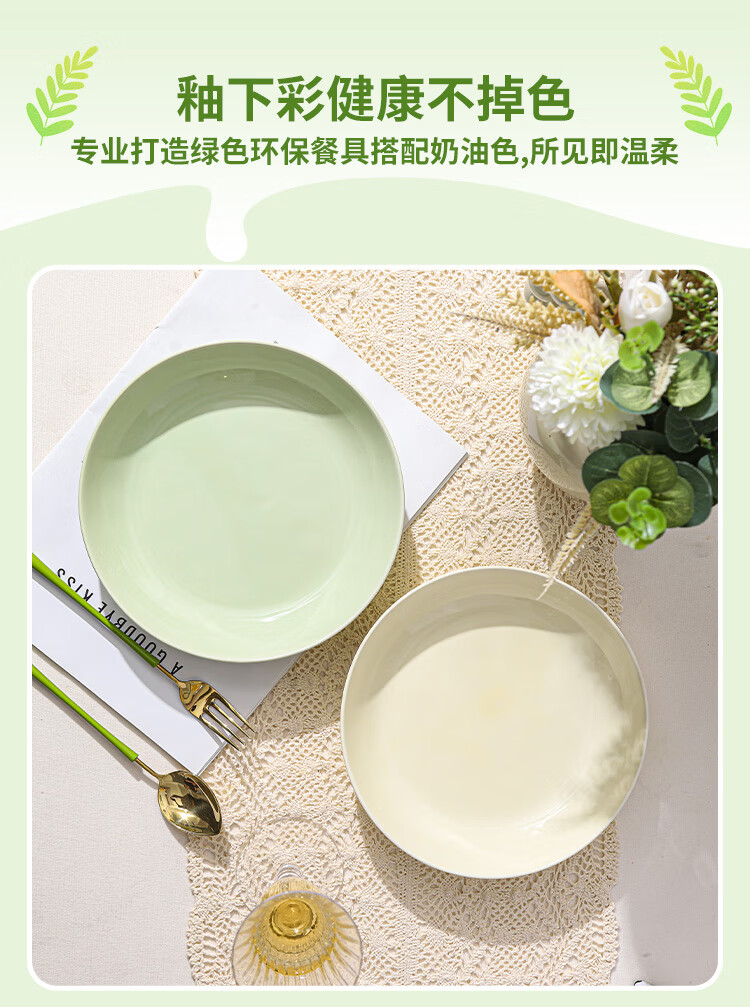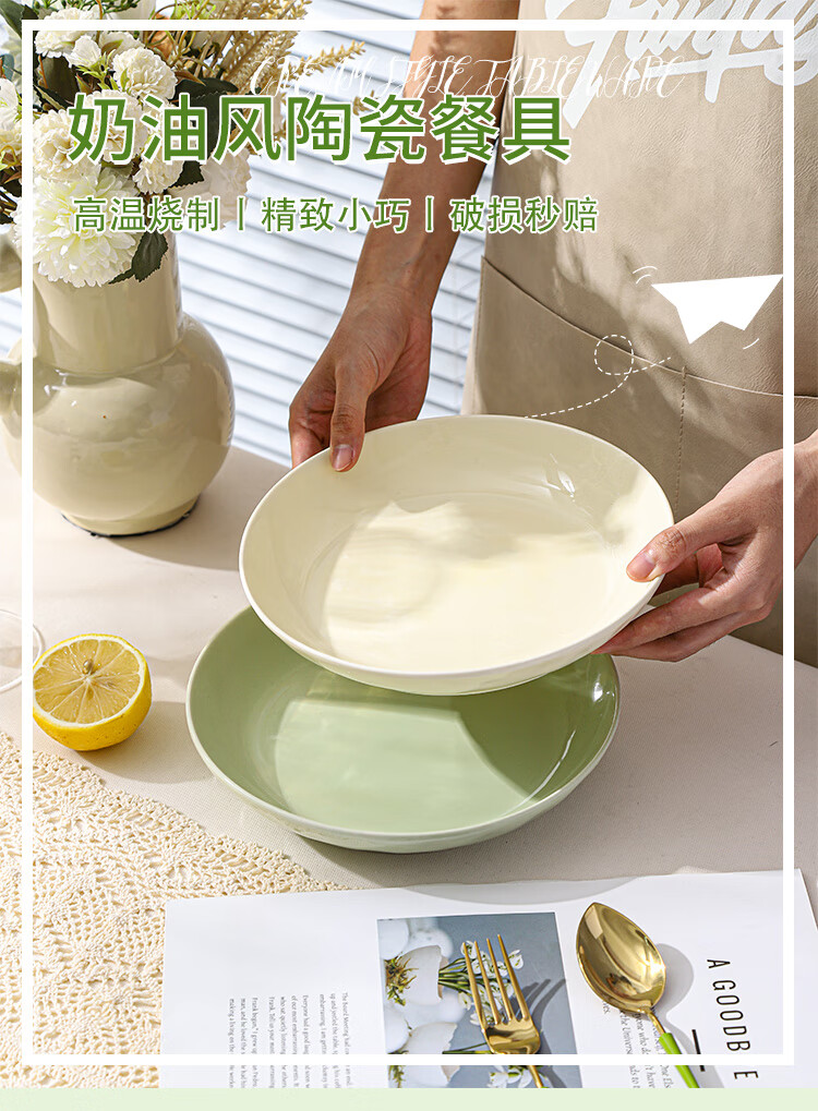 • 商品名称:佩尔森奶油风陶瓷盘子菜盘家用碗盘餐具釉下彩高级感餐盘奶油8盘2只装 餐具套装/只