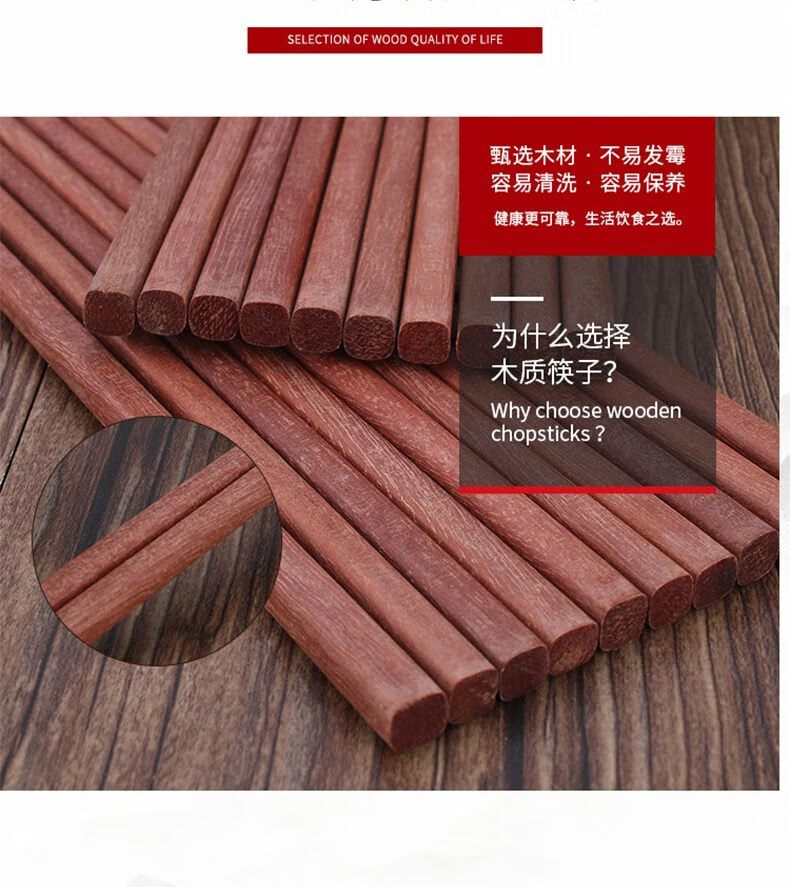 商品名称: 贝格帝红檀木筷子天然抗菌家用实木无漆无蜡筷子餐具套装10双BGD-HTK10 BGD-HTK10/盒
