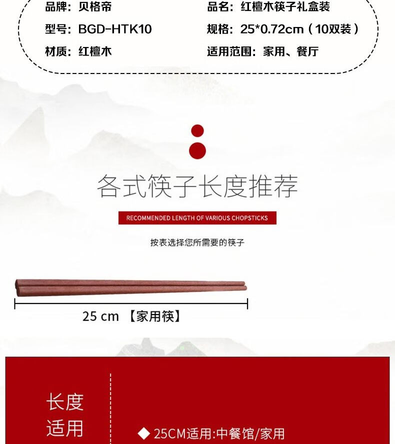 • 商品名称:贝格帝红檀木筷子天然抗菌家用实木无漆无蜡筷子餐具套装10双BGD-HTK10 BGD-HTK10/盒