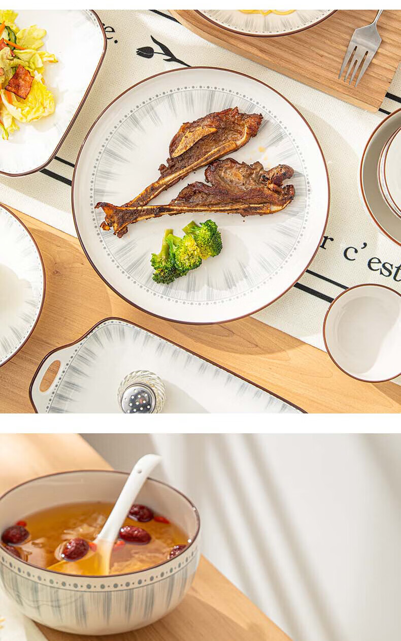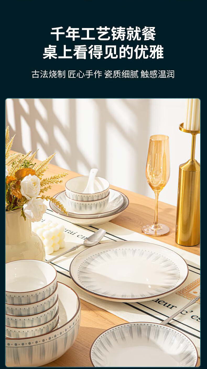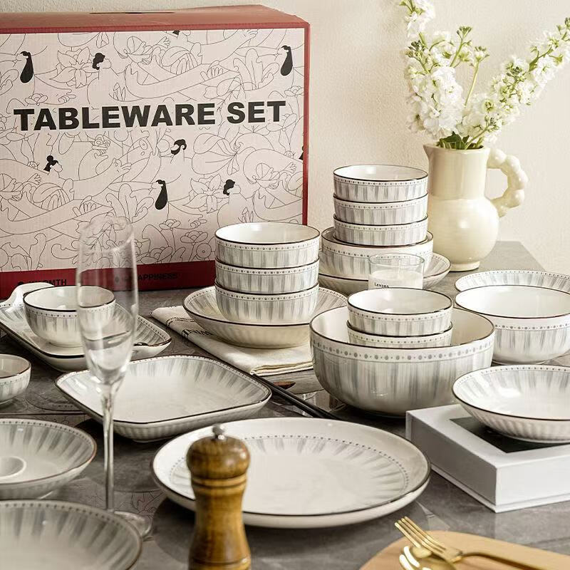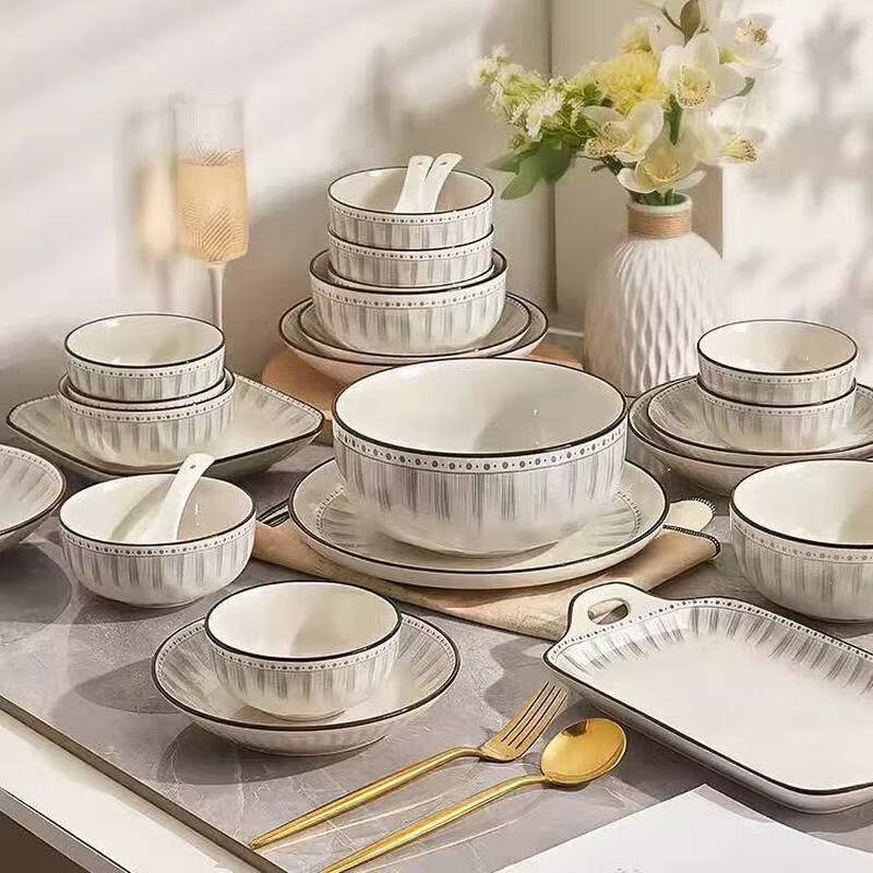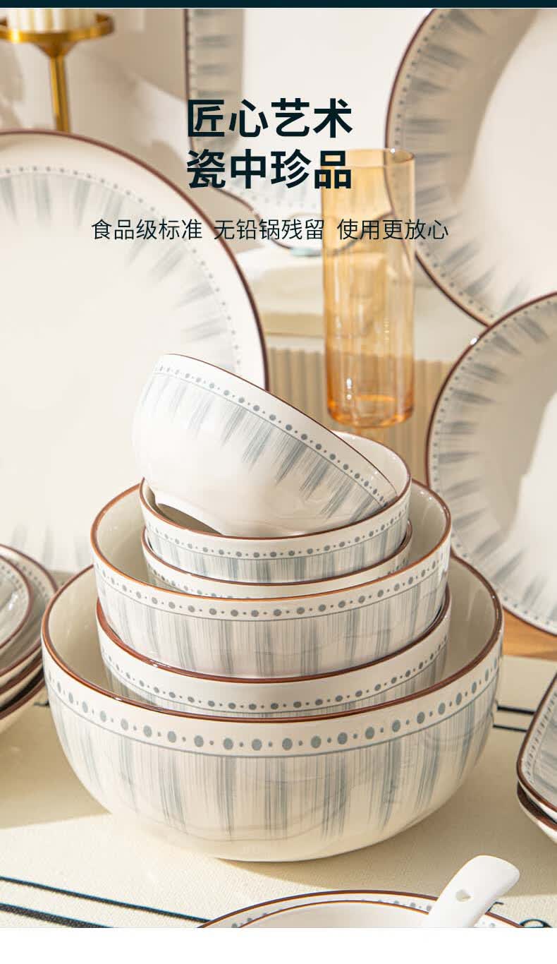 • 商品名称:佩尔森日式陶瓷碗盘餐具整套釉下彩碗盘筷餐具套装家用乔迁 蓝线条78头 餐具套装/套