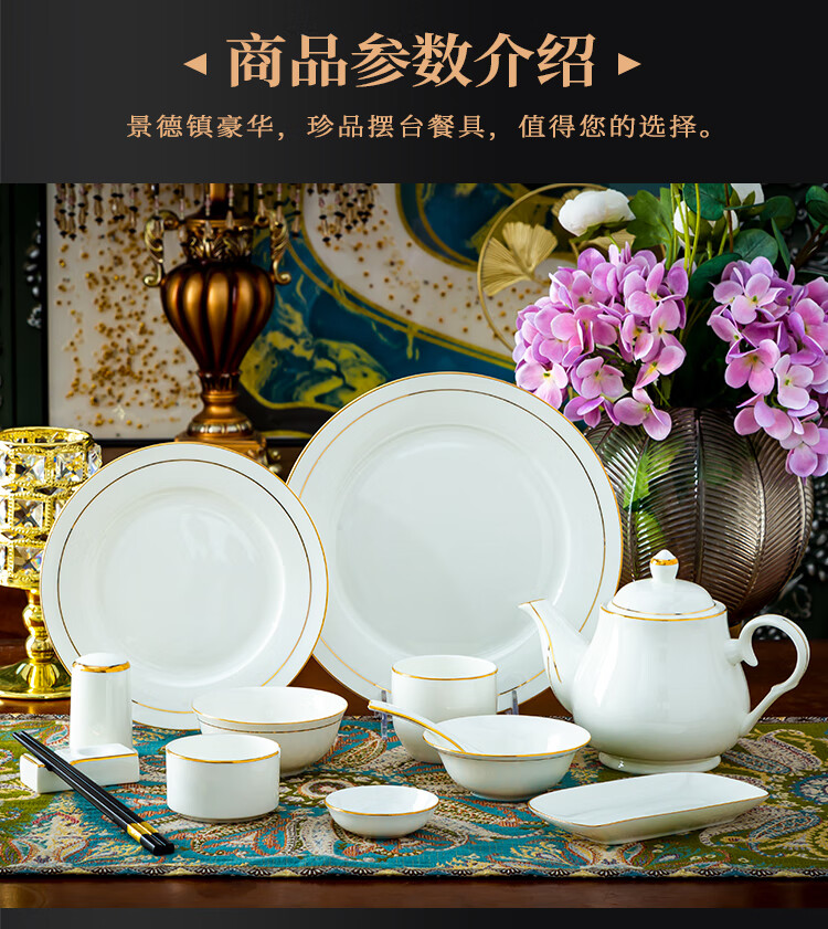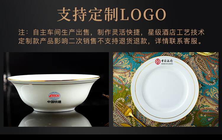 商品名称: 陶相惠陶瓷餐具套装酒店摆台碗盘勺7件套碗碟套装高档餐厅骨瓷餐具定制 金边摆台-7件套/套