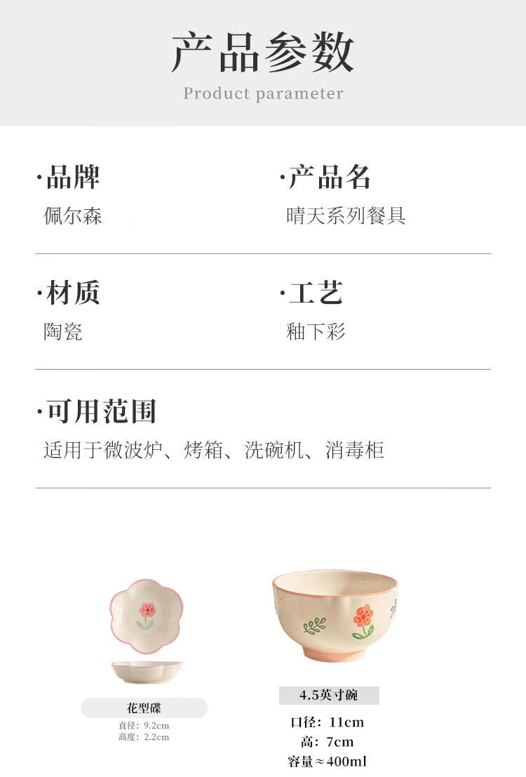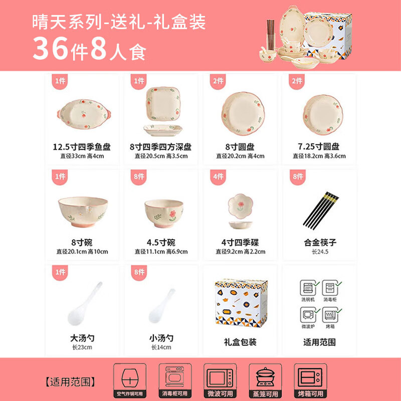 • 商品名称:佩尔森碗盘套装家用釉下彩小清新陶瓷餐具乔迁礼物晴天36头礼盒装 餐具套装/套