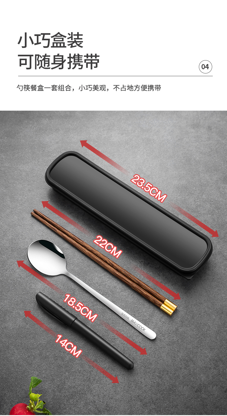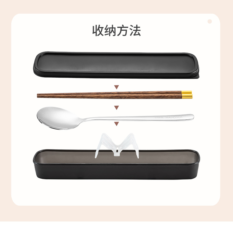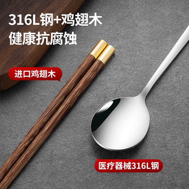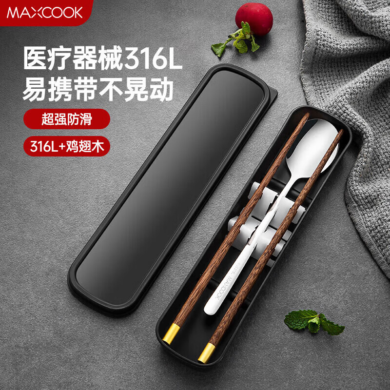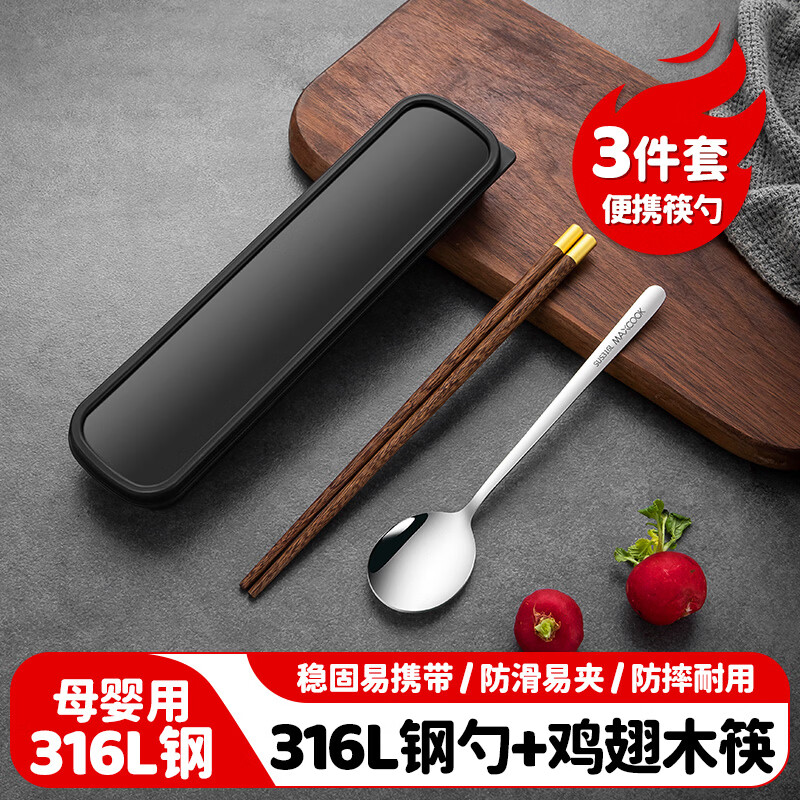 • 商品名称:美厨(MAXCOOK)316L不锈钢勺子木筷子餐具套装 鸡翅木便携式筷勺三件套MCK5596 鸡翅木筷勺套装/个