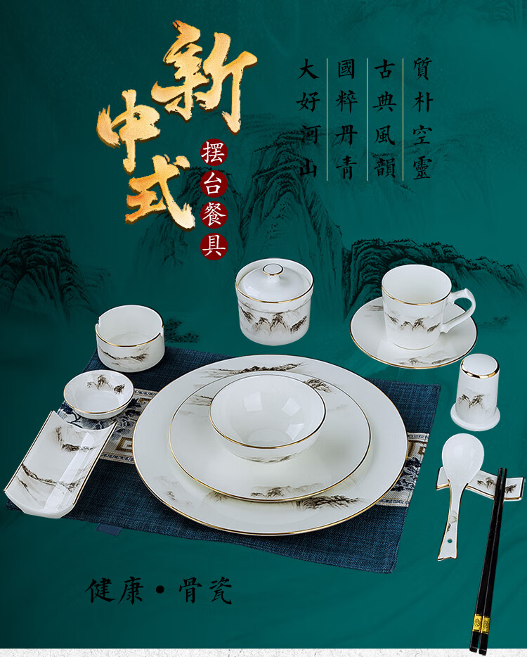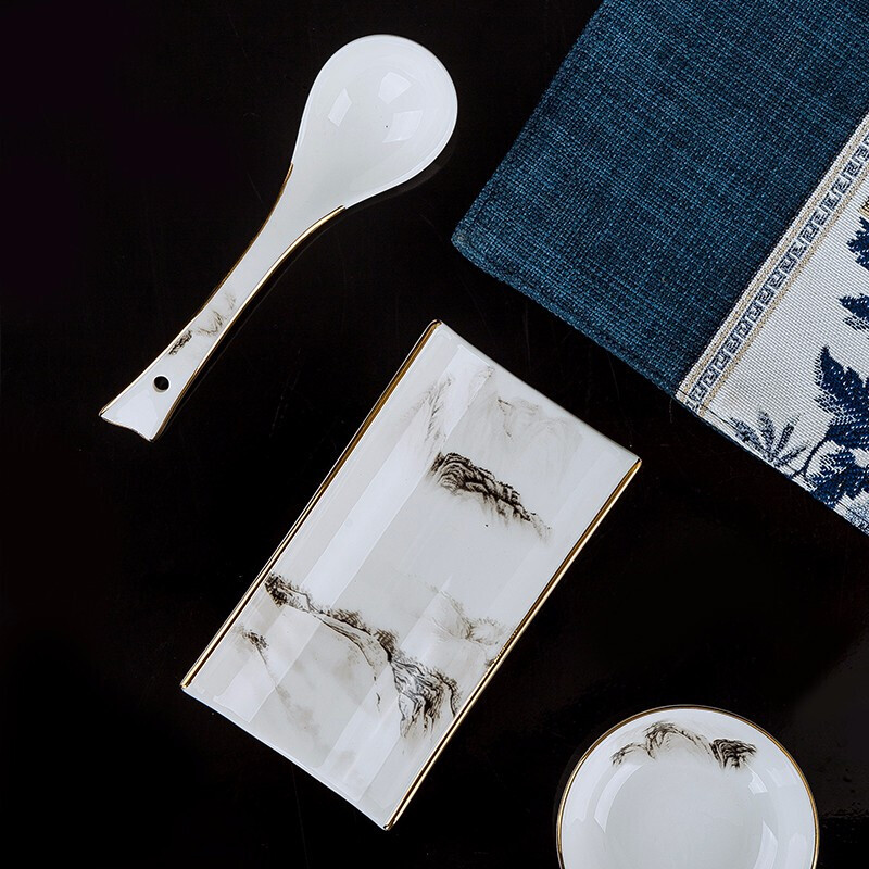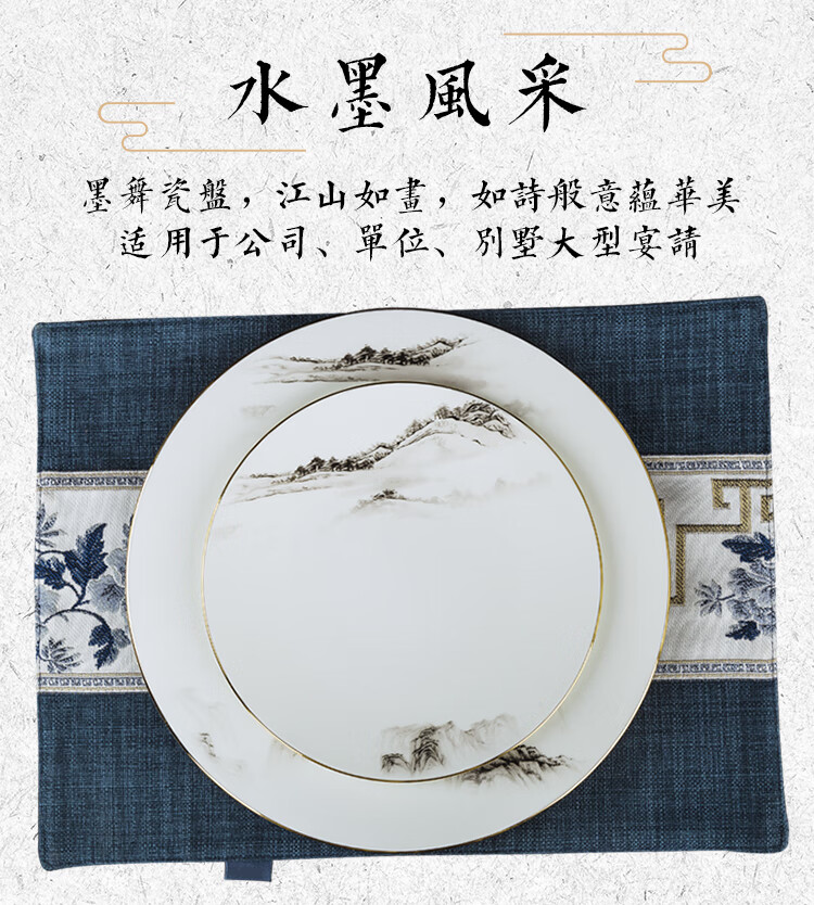 厨具  > 餐具  > 餐具套装  >  陶相惠  >  陶相惠新中式餐具摆台套装陶瓷碗碟盘勺定制餐厅会所六件套酒店摆台碗盘 大好河山白金款-6件套/套