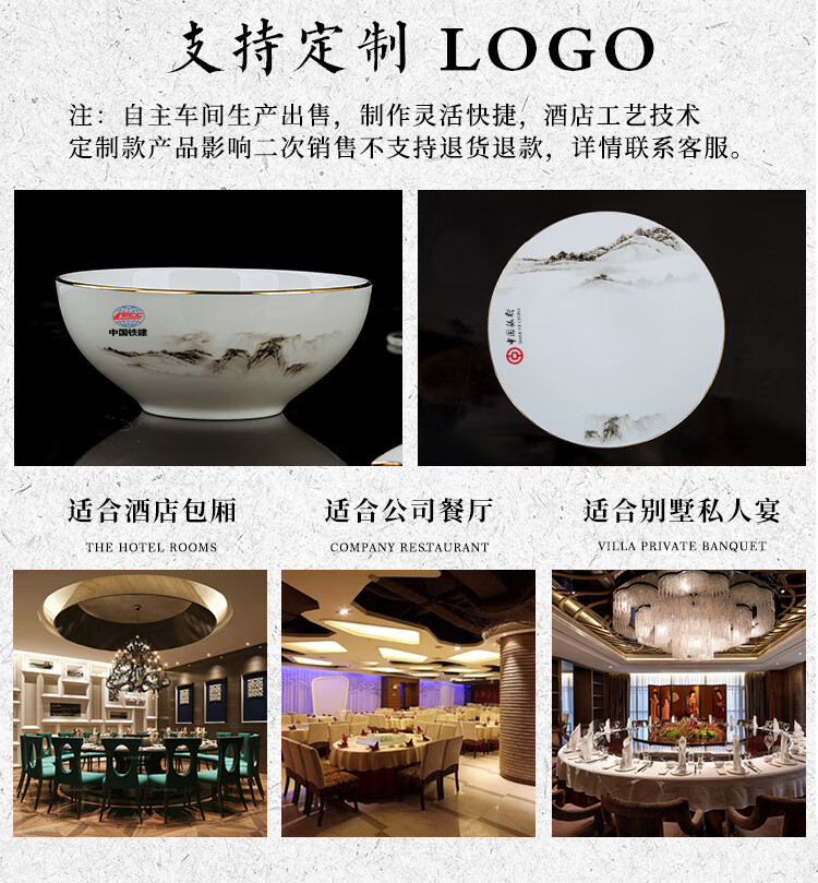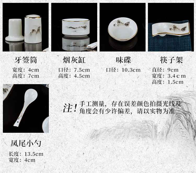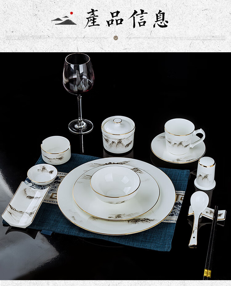 • 商品名称:陶相惠新中式餐具摆台套装陶瓷碗碟盘勺定制餐厅会所六件套酒店摆台碗盘 大好河山白金款-6件套/套