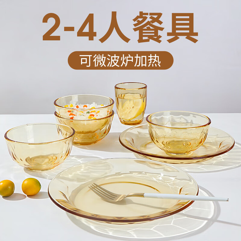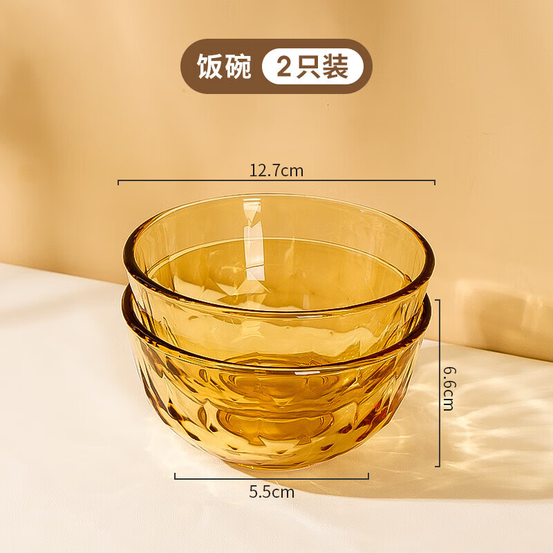 厨具  > 餐具  > 餐具套装  >  希乐扣Cilock  >  希乐扣Cilock玻璃碗盘 高硼硅耐高温可微波 水果碗汤碗菜碗面碗家用饭碗 2只装 琥珀色钻石碗小号2只/只