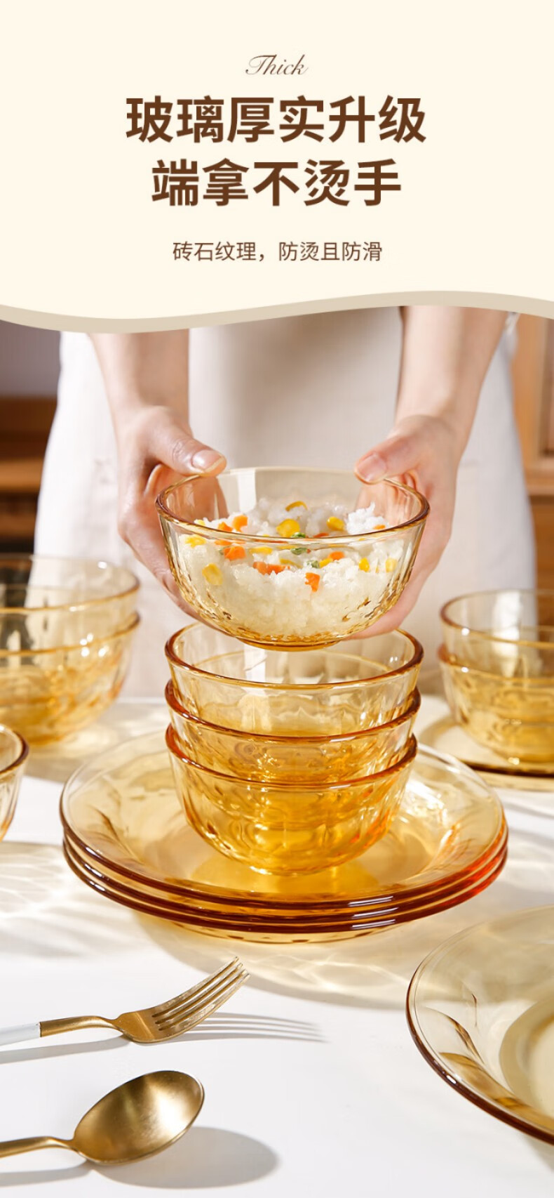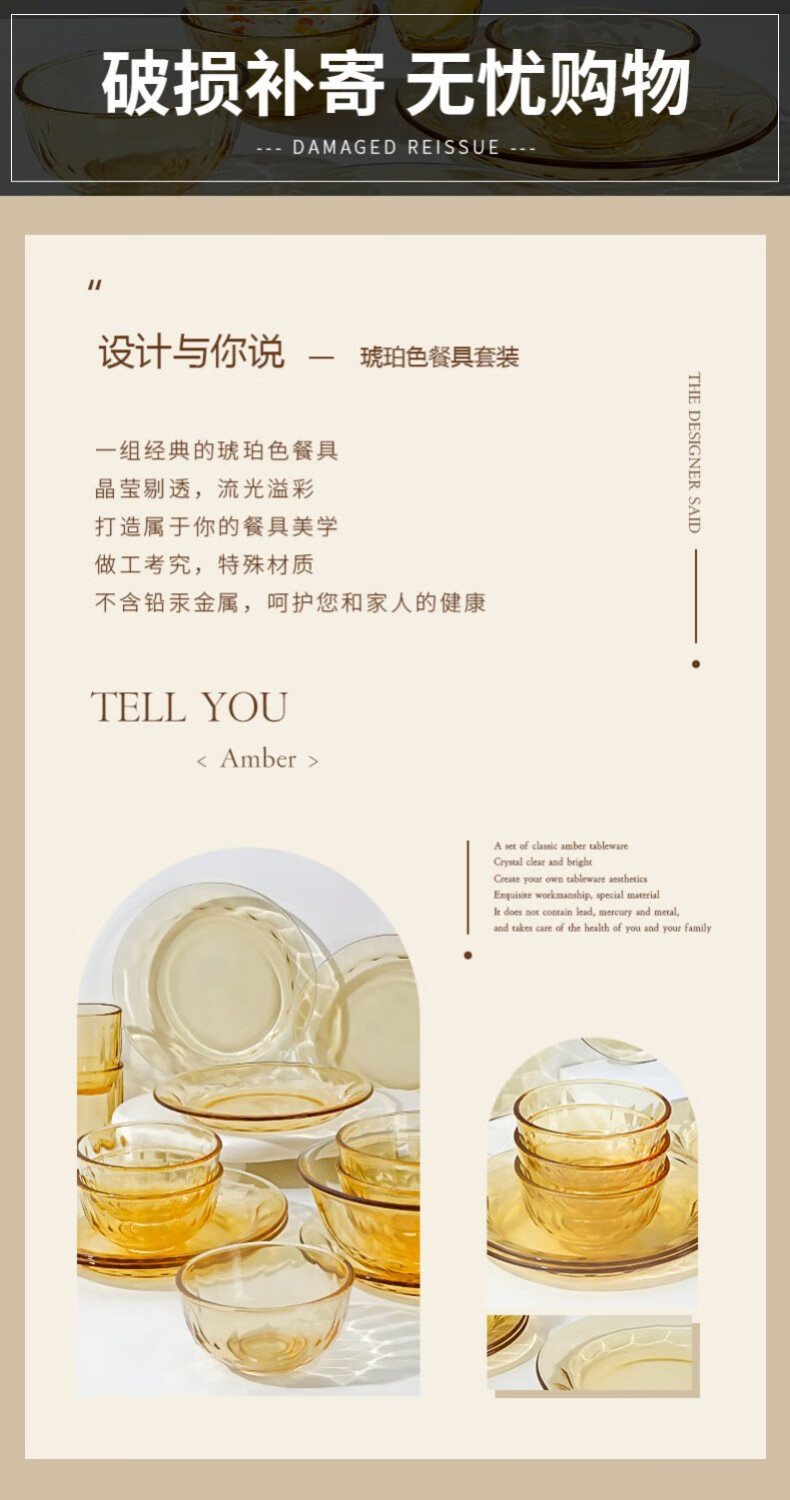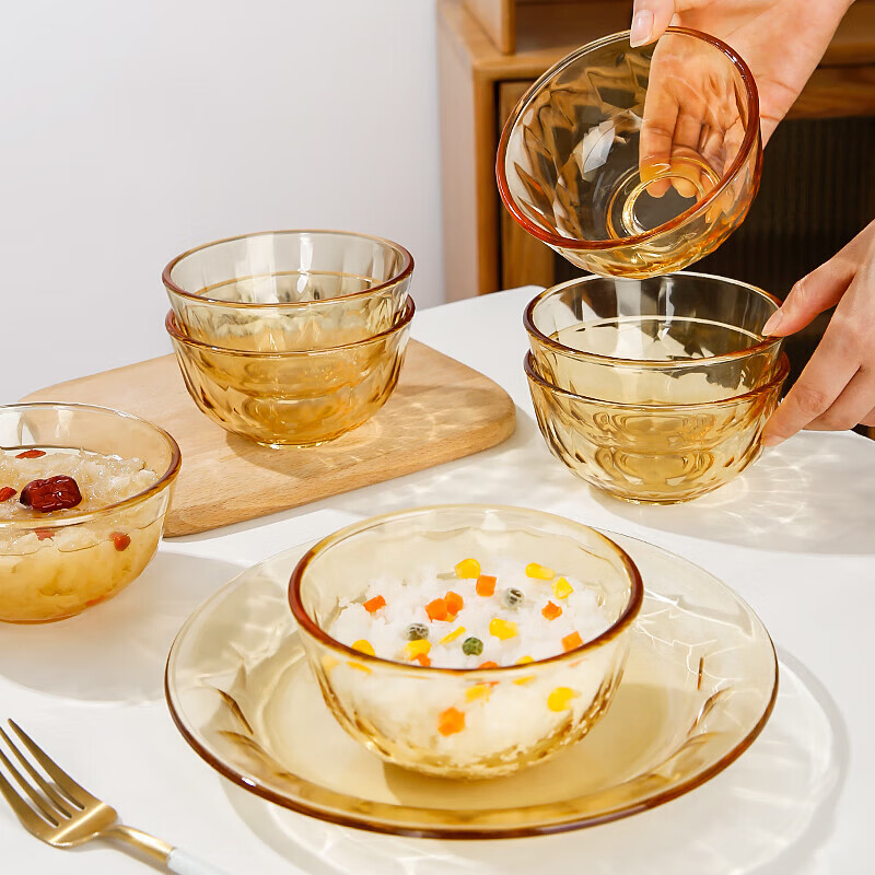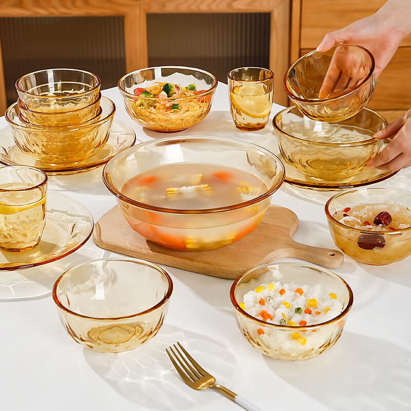 • 商品名称:希乐扣Cilock玻璃碗盘 耐高温可微波水果盘汤盆菜盘汤碗面碗家用饭碗 大号*2 琥珀色钻石碗大号*2/只