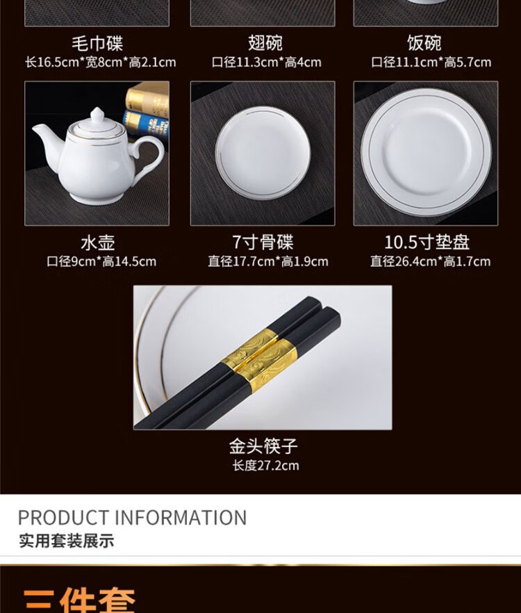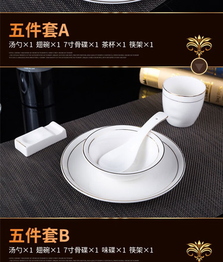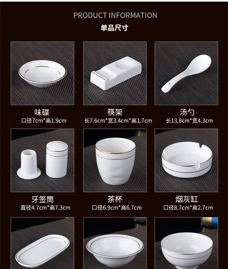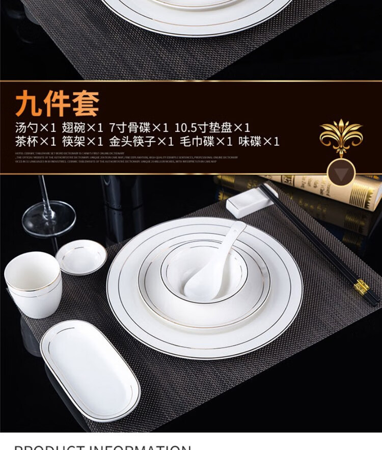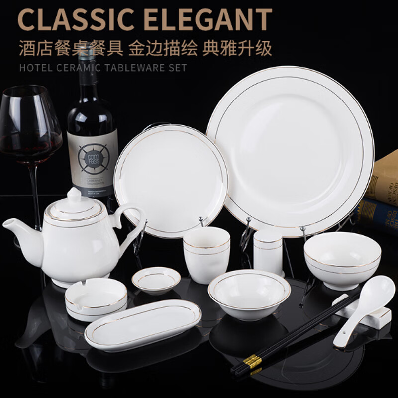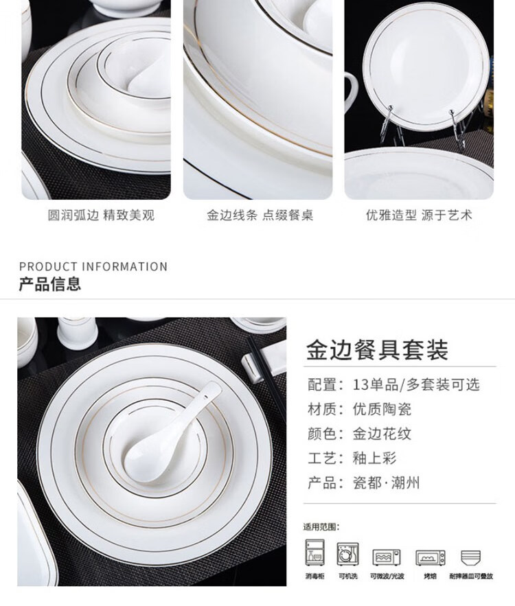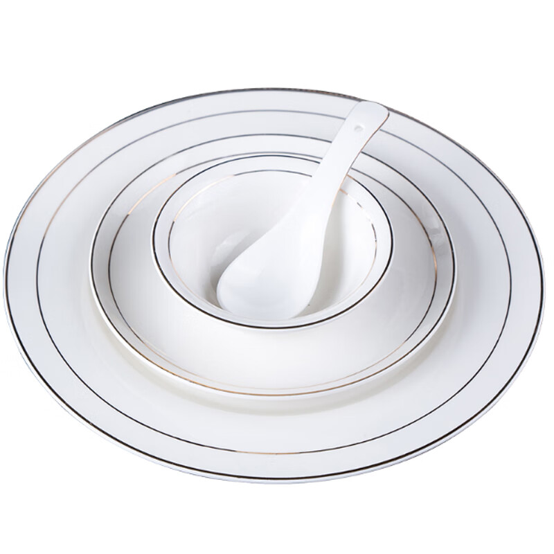 • 商品名称:敏奈 陶瓷金边摆台餐具 酒店餐具金线餐具套装盘碗碟 汤勺 摆台餐具/个