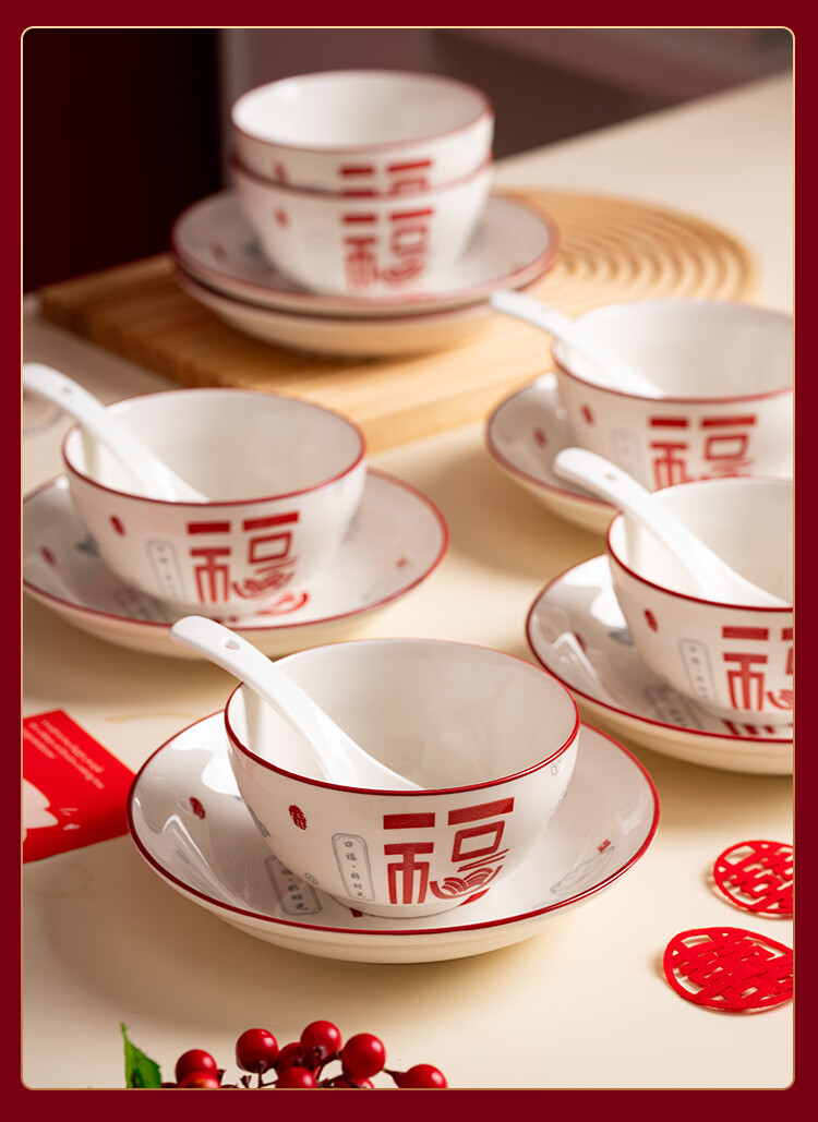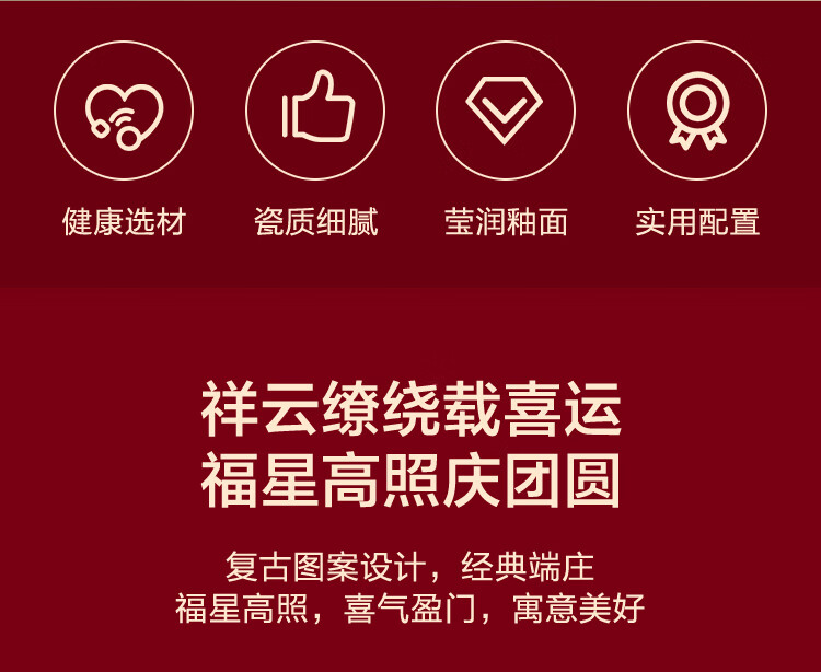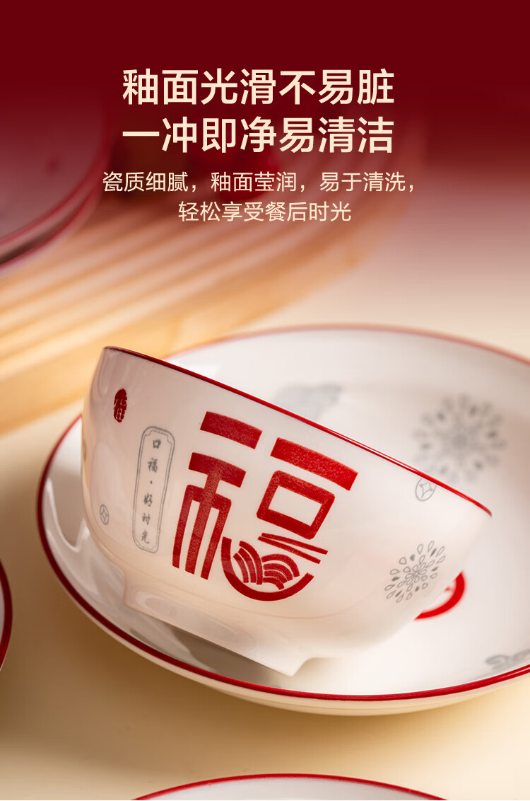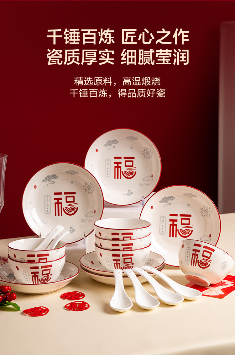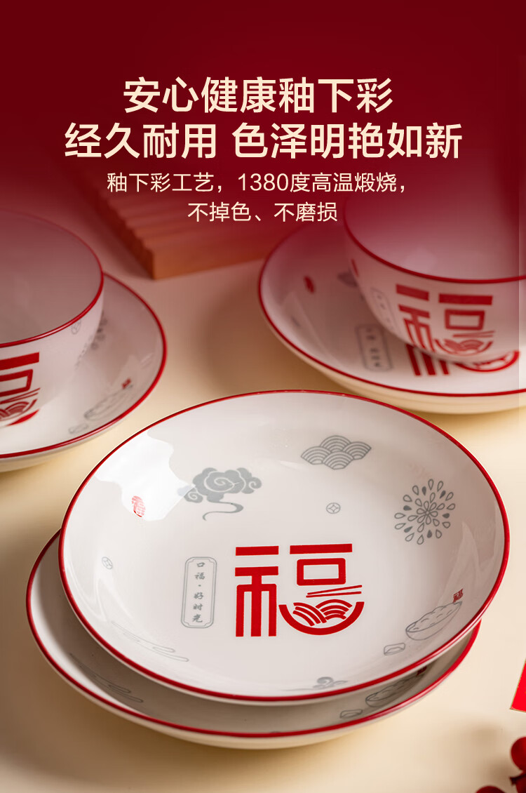 • 商品名称:惠寻 碗盘餐具整套 釉下彩家用陶瓷碗碟筷子餐具套装 福字祥云22头 22件套福字祥云/套