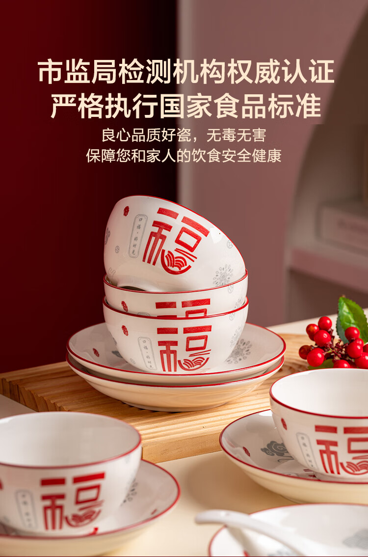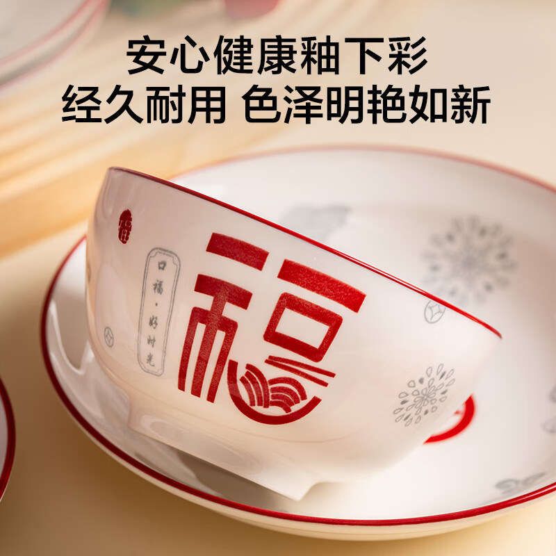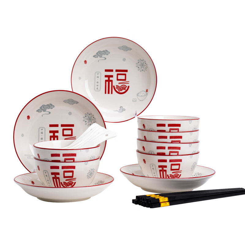 商品名称: 惠寻 碗盘餐具整套 釉下彩家用陶瓷碗碟筷子餐具套装 福字祥云22头 22件套福字祥云/套