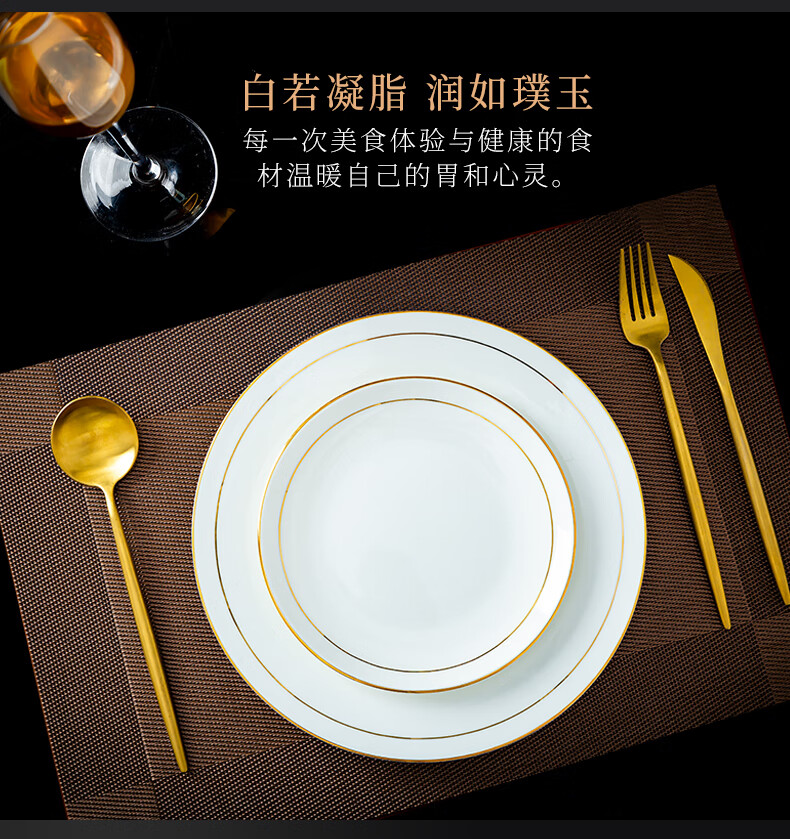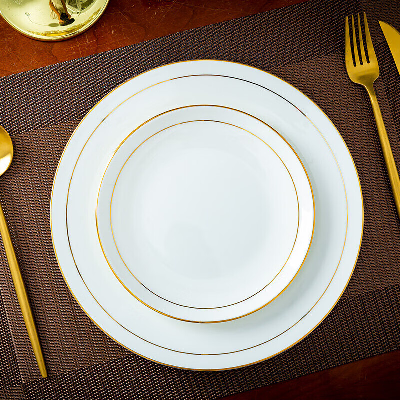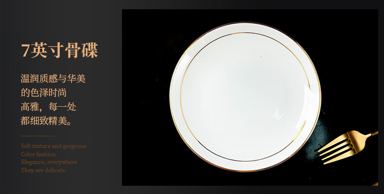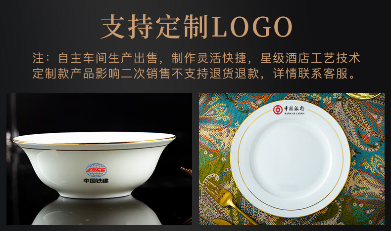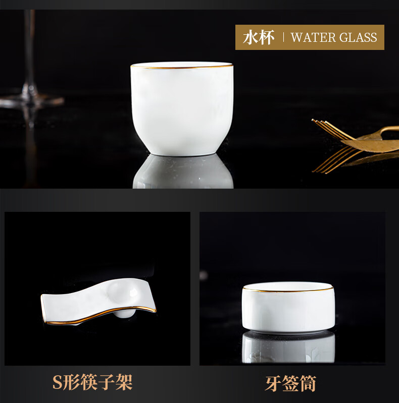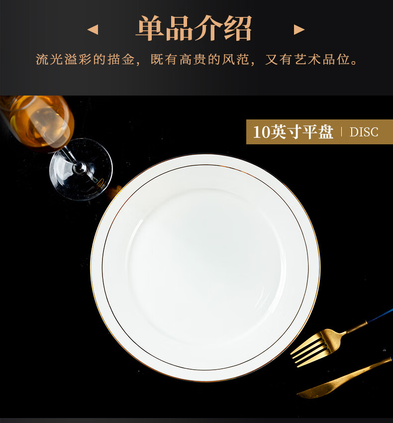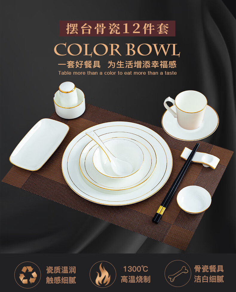 商品名称: 陶相惠陶瓷餐具套装酒店摆台12件套碗盘碟套装高档会所餐厅骨瓷餐具定制 金边12件套/套
