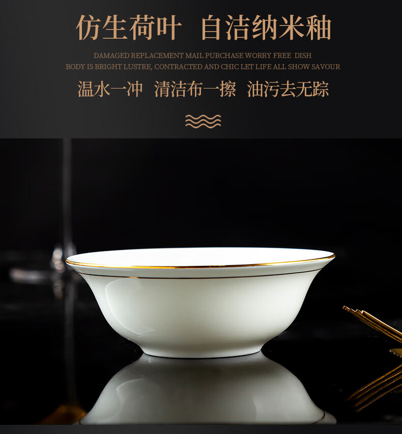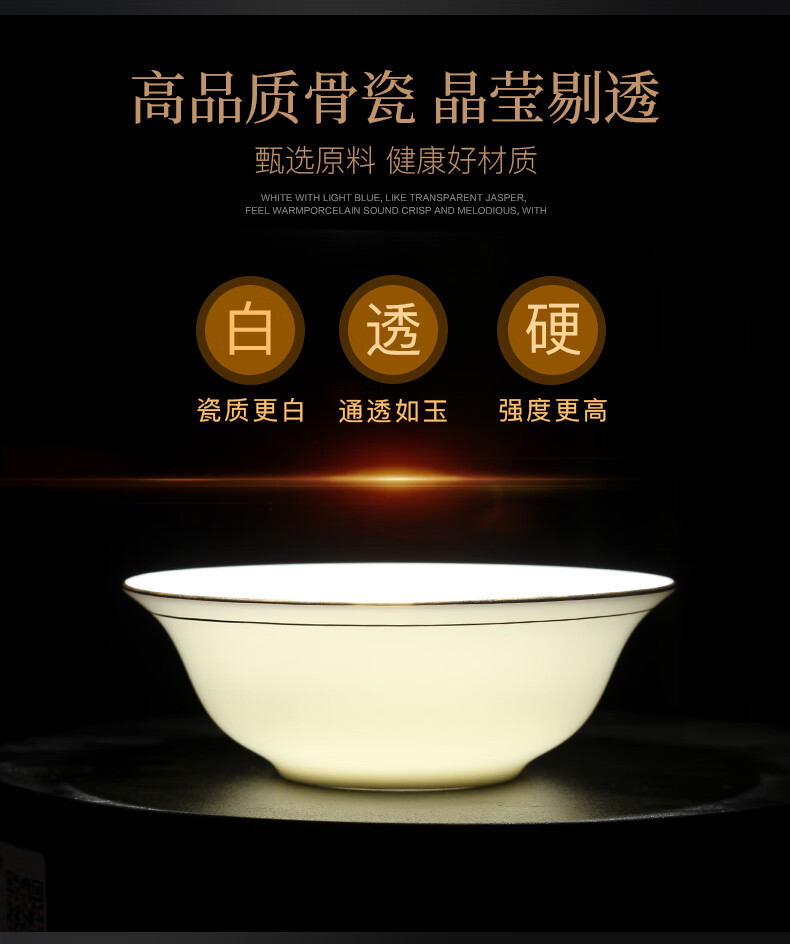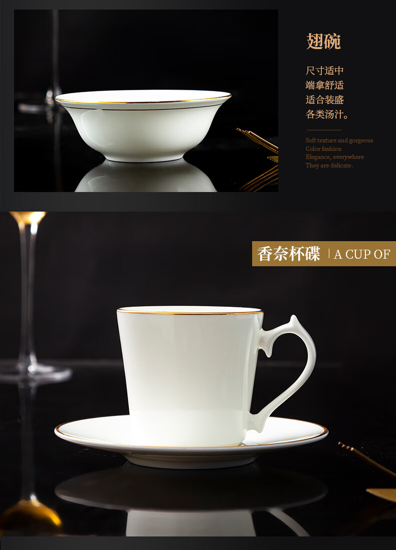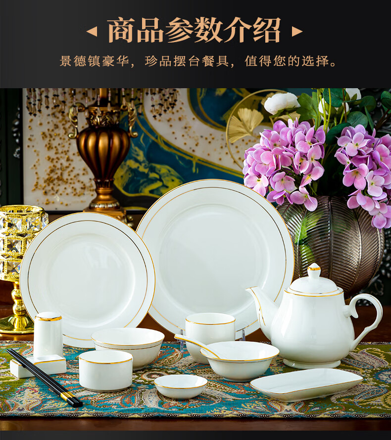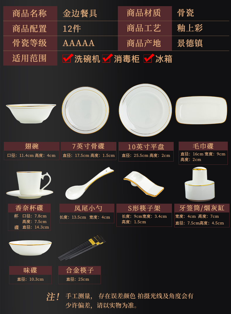 商品名称: 陶相惠陶瓷餐具套装酒店摆台12件套碗盘碟套装高档会所餐厅骨瓷餐具定制 金边12件套/套