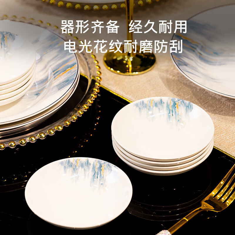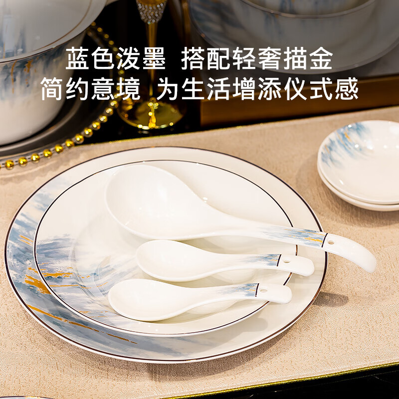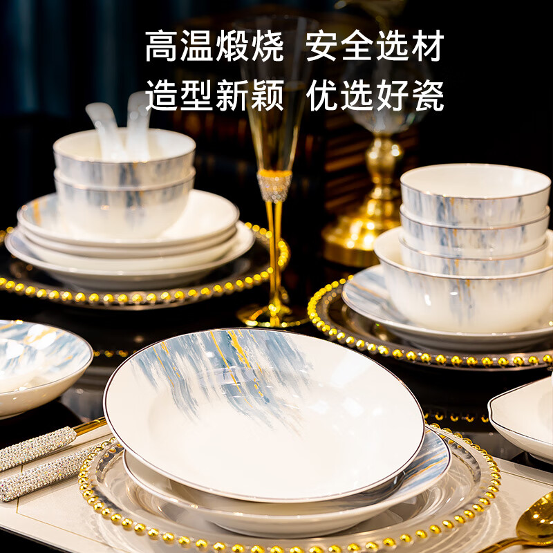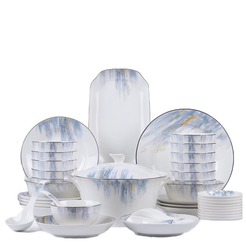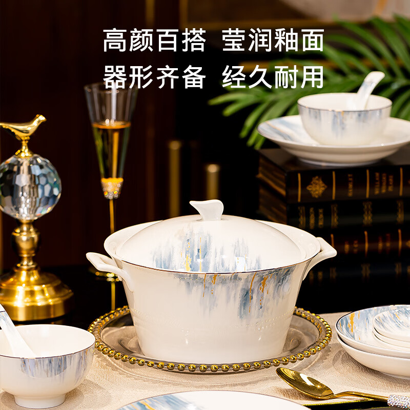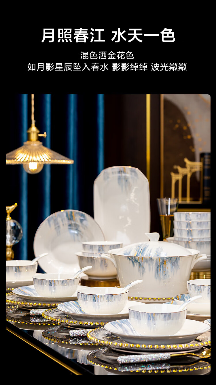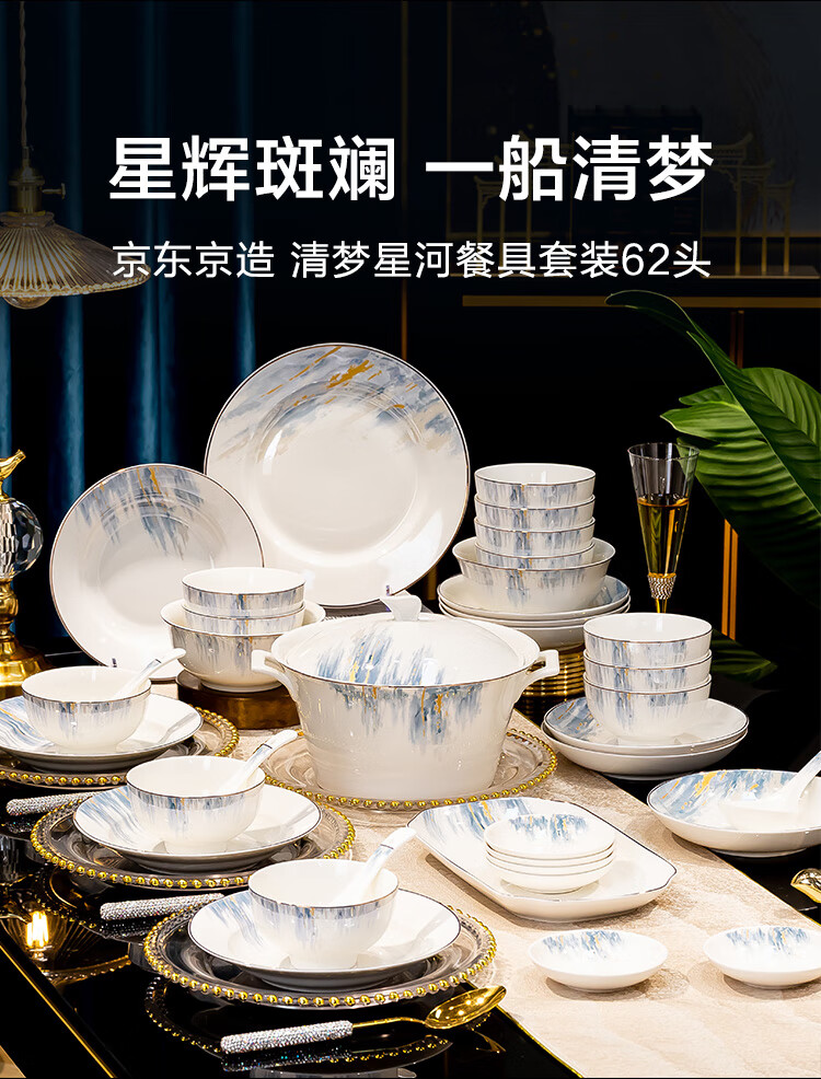 厨具  > 餐具  > 餐具套装  >  京东京造  >  京东京造 碗盘餐具整套 碗碟子套装乔迁之喜陶瓷家用礼盒装 清梦星河62头 JZ-cg089/套