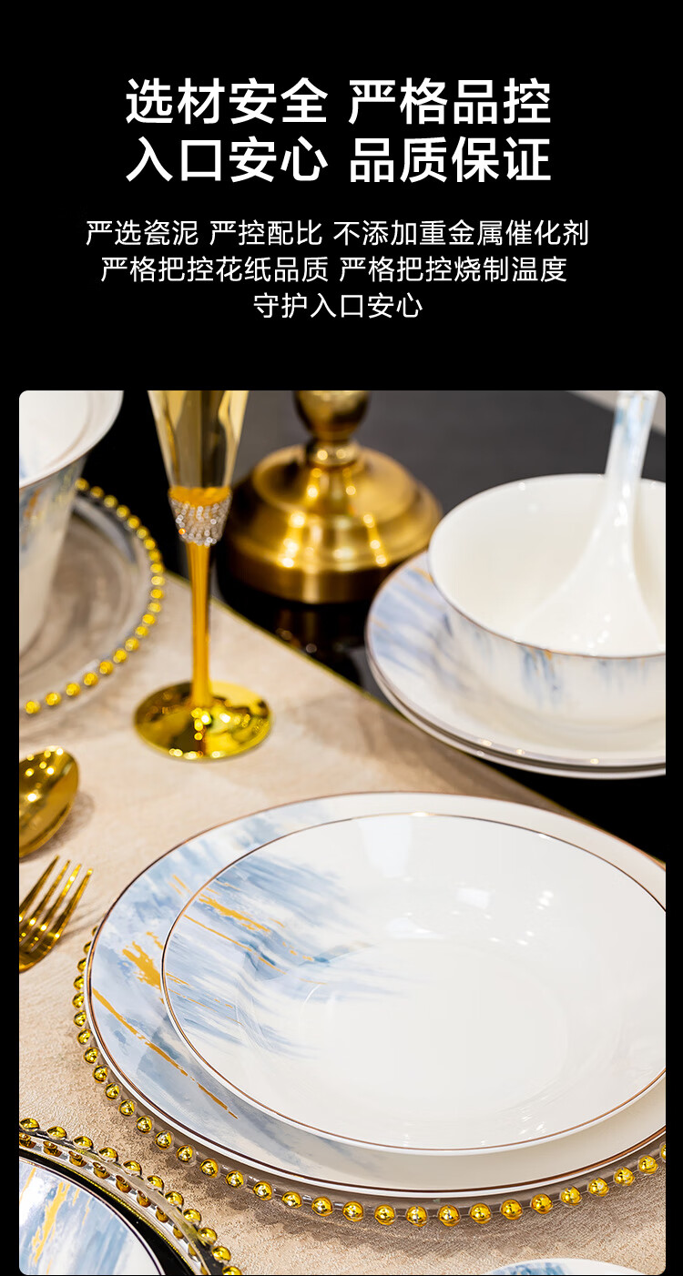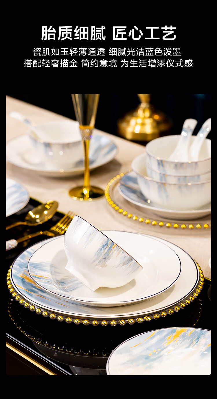 • 商品名称:京东京造 碗盘餐具整套 碗碟子套装乔迁之喜陶瓷家用礼盒装 清梦星河62头 JZ-cg089/套