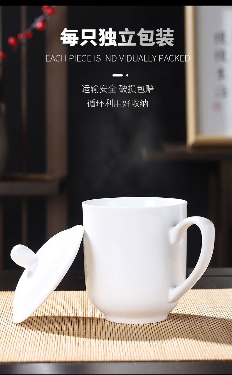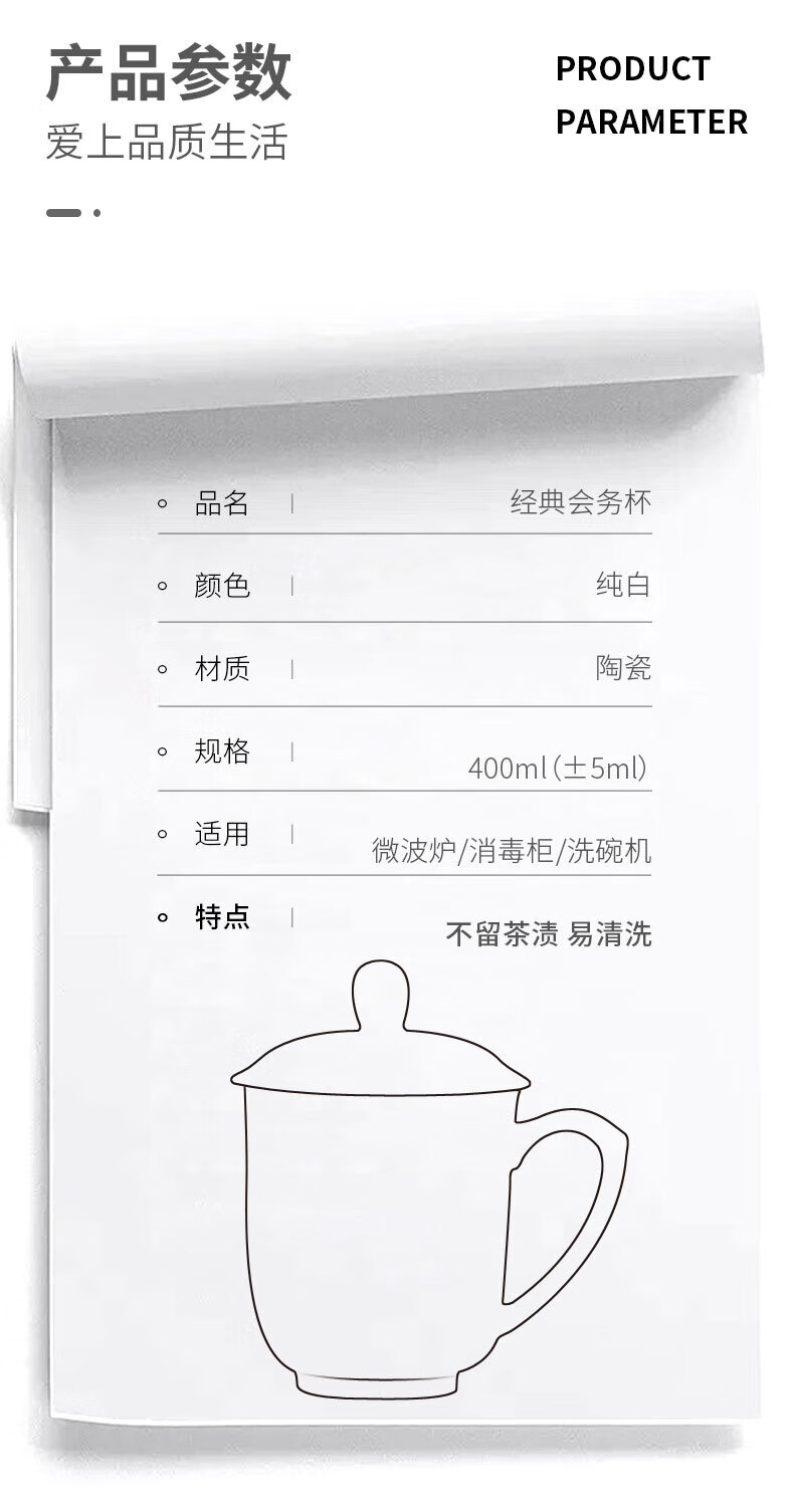 • 商品名称:HUIHUADU陶瓷经典会务茶杯400ml 带盖马克杯办公会议水杯 茶杯/只