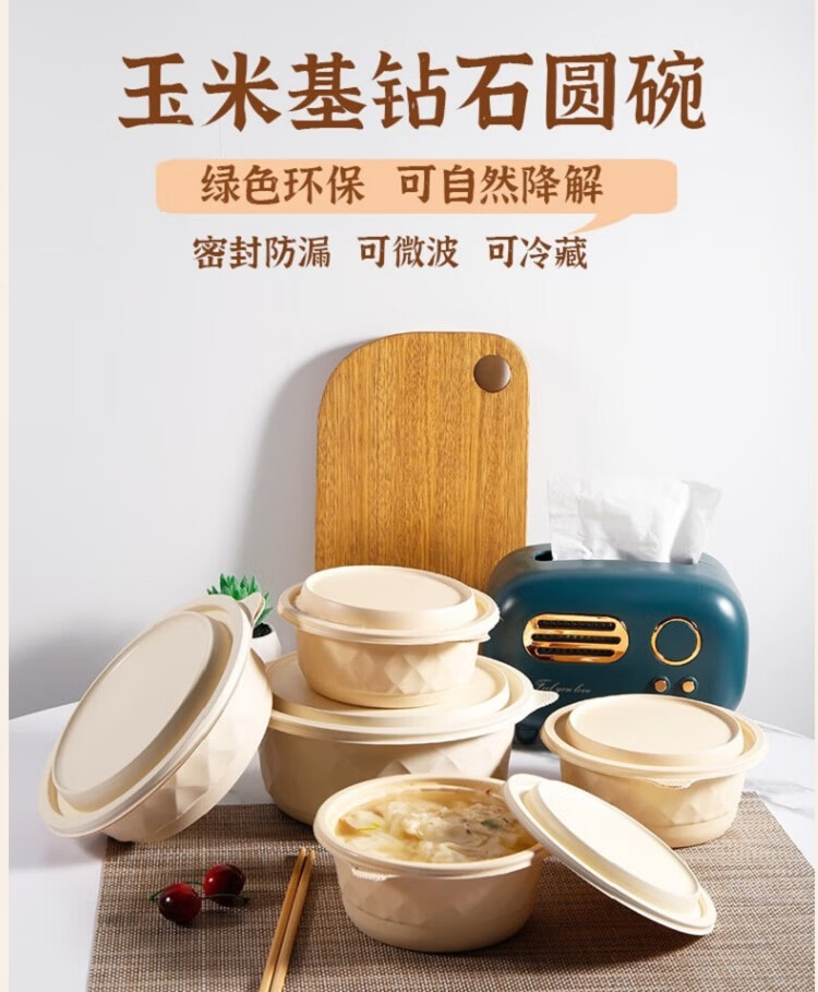 商品名称: 爱之旅玉米淀粉可降解餐盒一次性圆形饭盒 450ml 300套/件 圆形饭盒/件