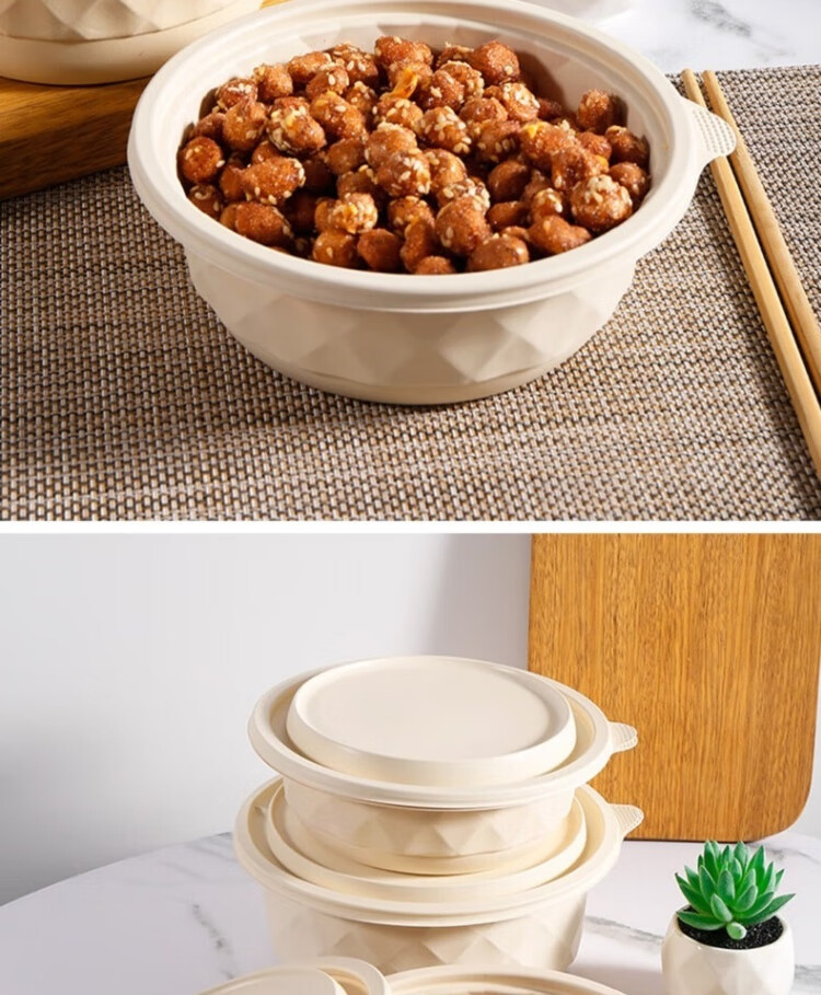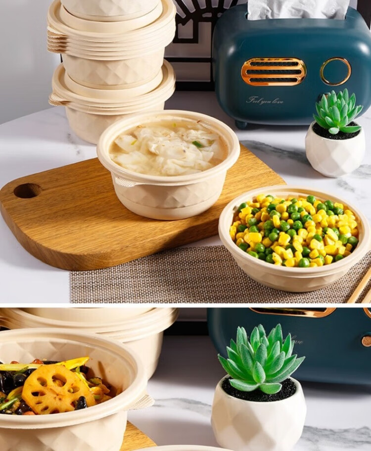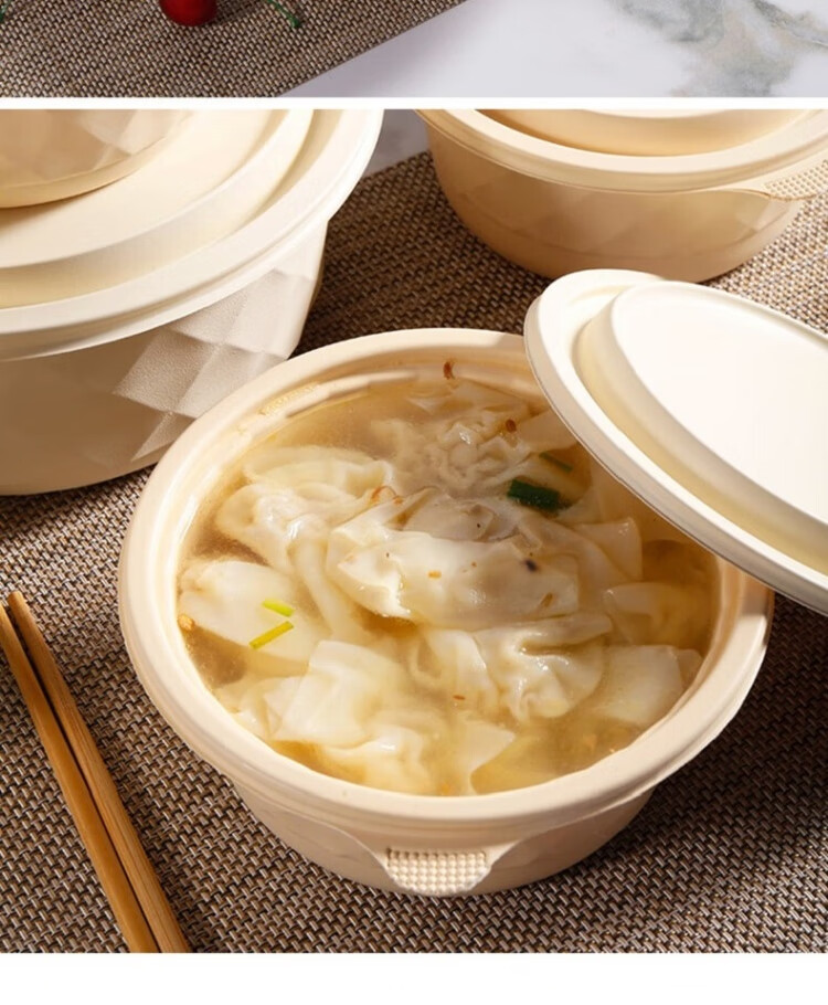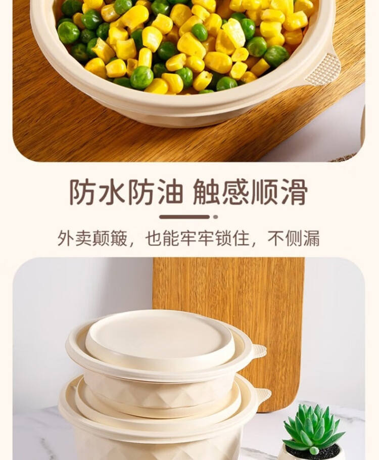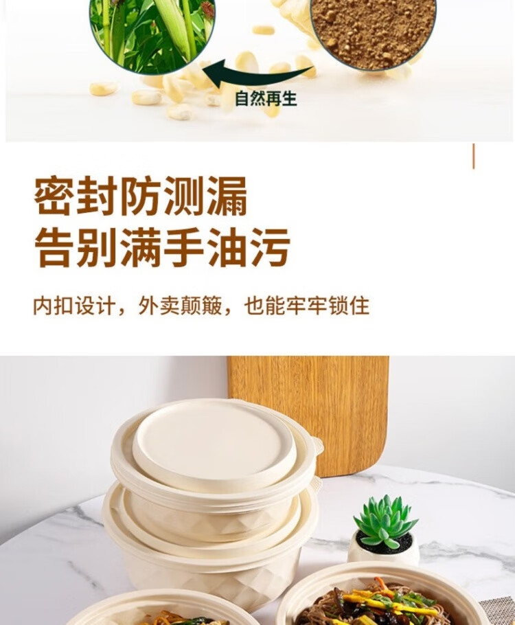 • 商品名称:爱之旅玉米淀粉可降解餐盒一次性圆形饭盒 450ml 300套/件 圆形饭盒/件