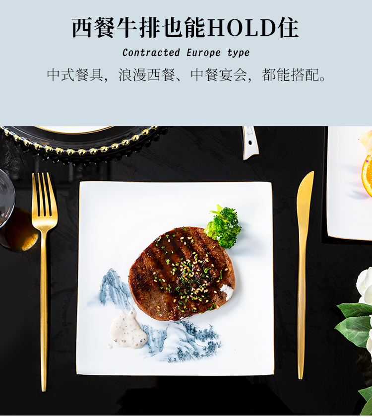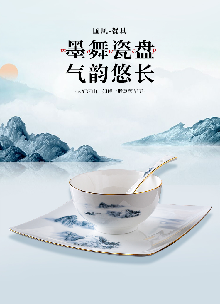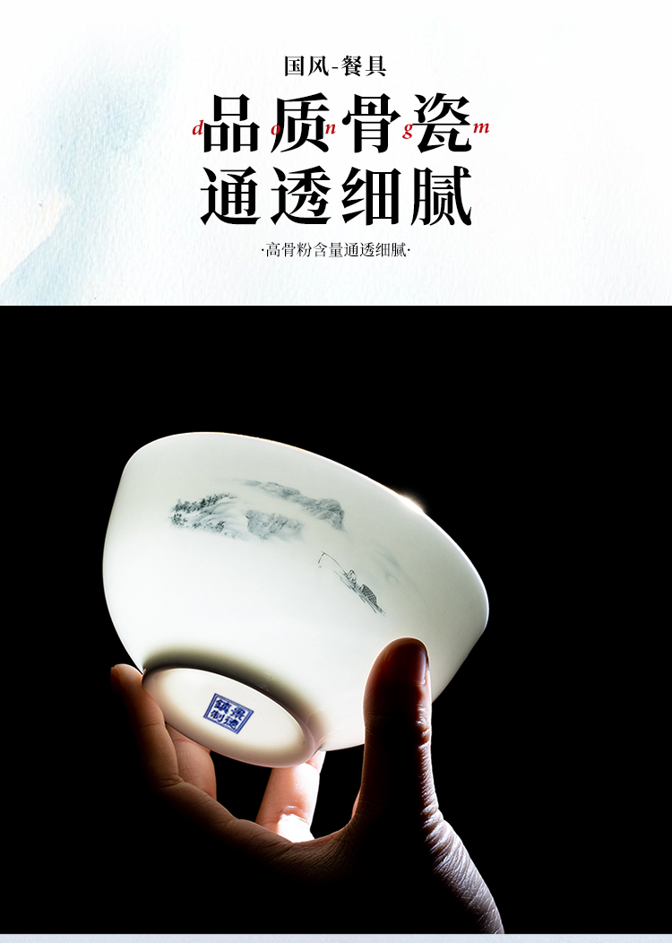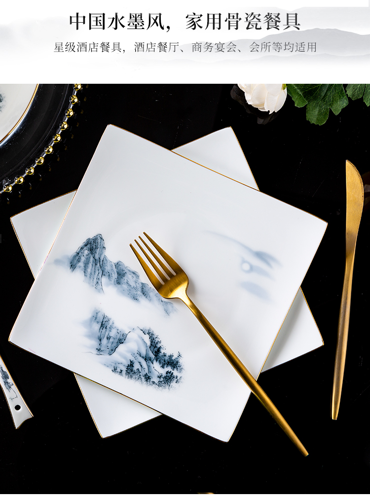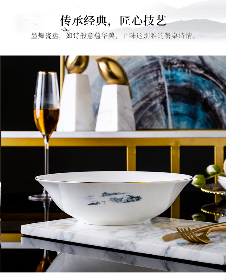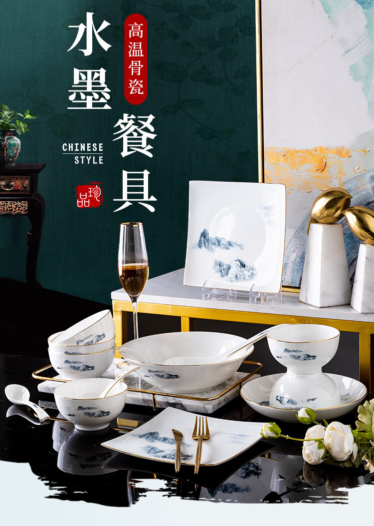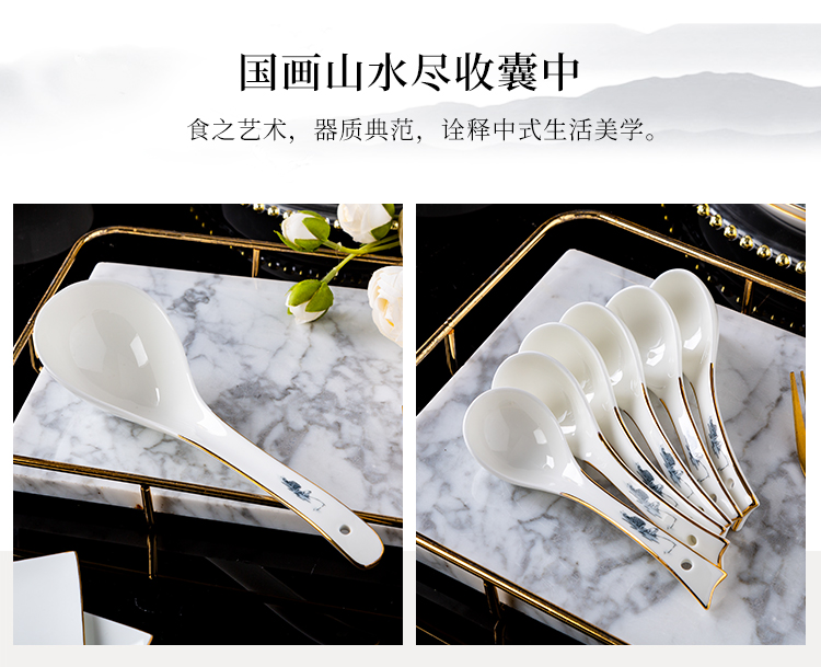 商品名称: 陶相惠景德镇骨瓷家用餐具套装碗碟套装20头组合碗盘勺单位福利送礼 金边山水之间餐具20头/套