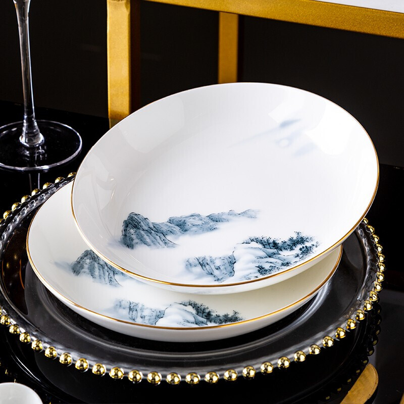 厨具  > 餐具  > 餐具套装  >  陶相惠  >  陶相惠景德镇骨瓷家用餐具套装碗碟套装20头组合碗盘勺单位福利送礼 金边山水之间餐具20头/套
